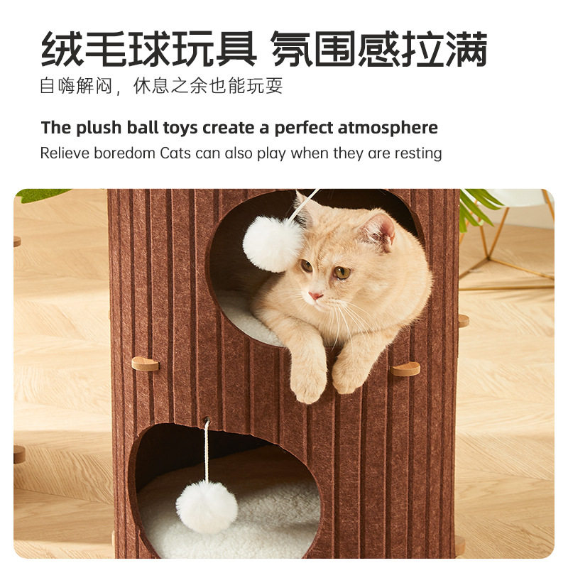 猫窝猫爬架一体多层封闭式猫咪睡窝耐抓多猫家庭逗猫球毛毡桶耐磨