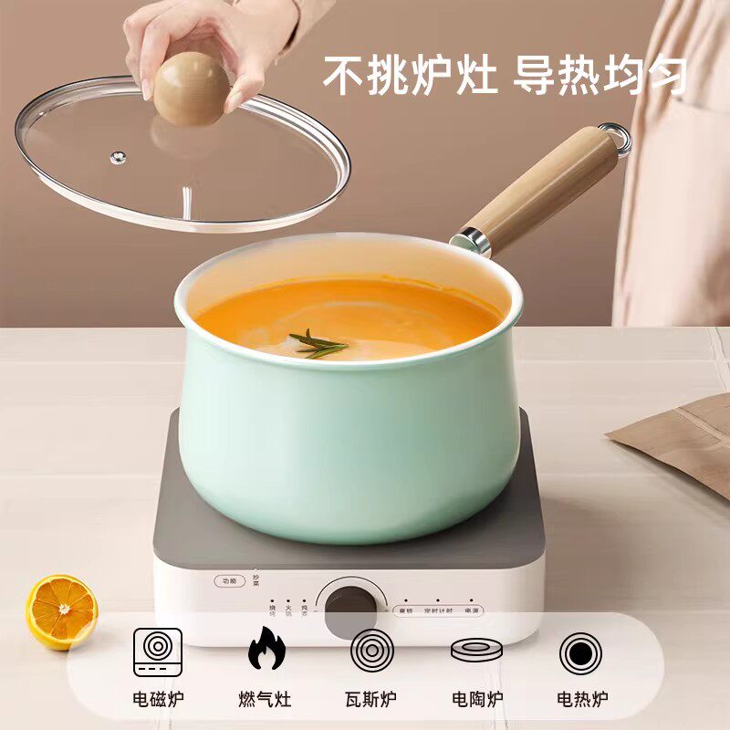 陶瓷奶锅不粘锅宝宝辅食锅一人食小锅家用泡面锅燃气灶电磁炉通用