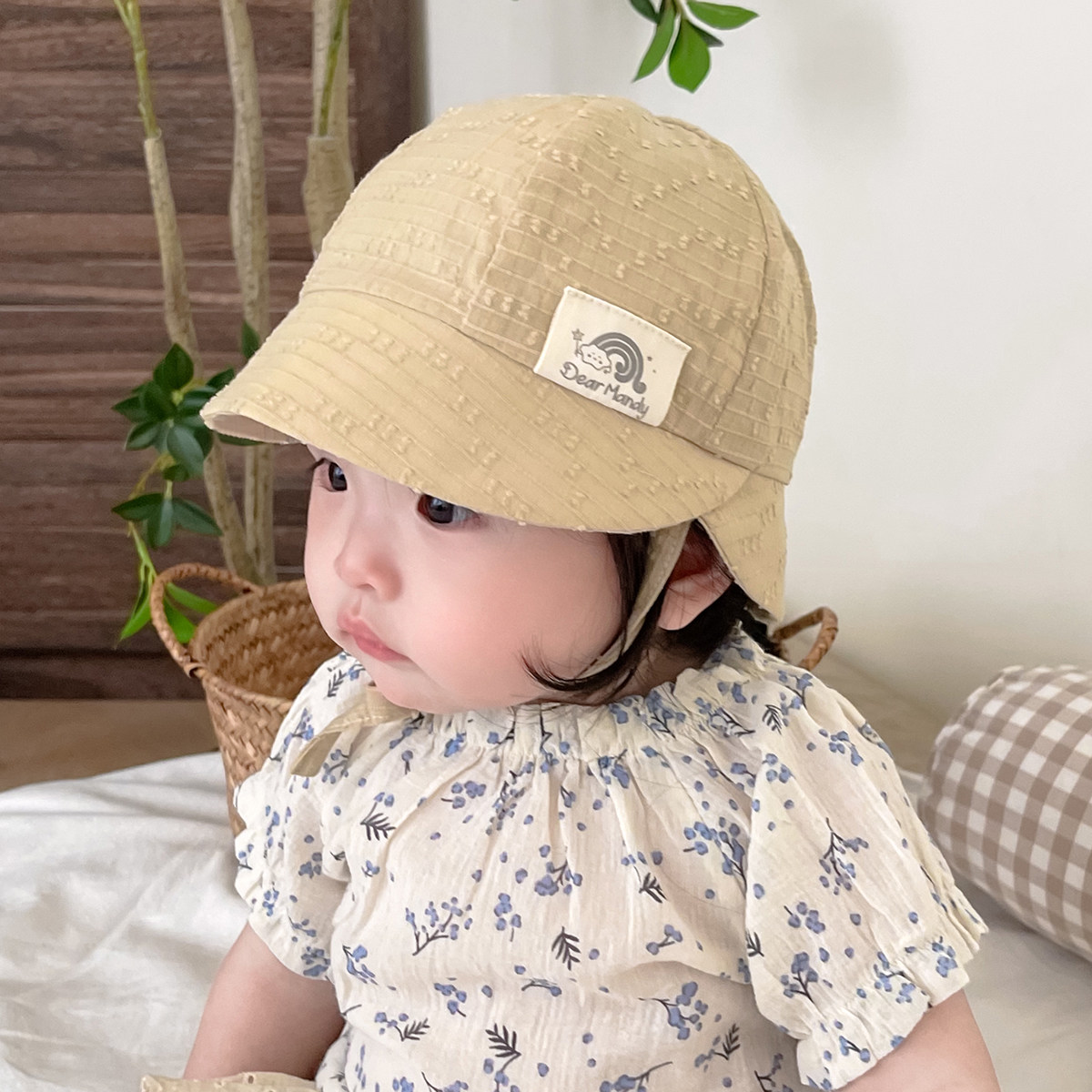 婴儿遮阳帽夏季薄款纯棉透气大檐防晒防紫外线男女宝宝儿童渔夫帽