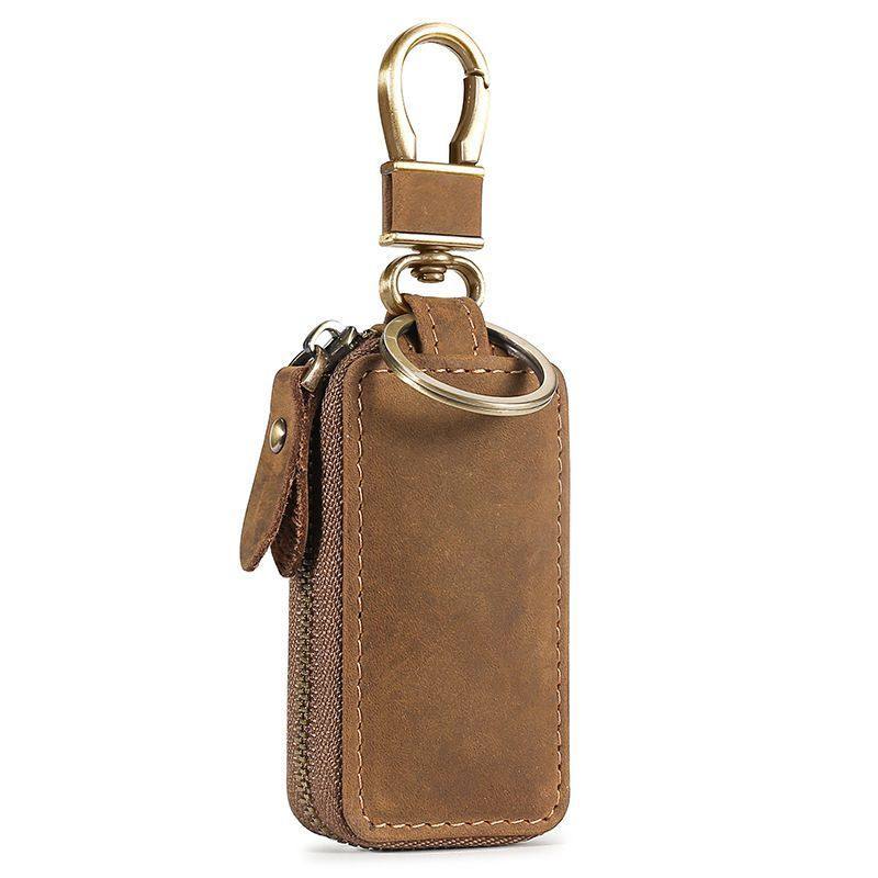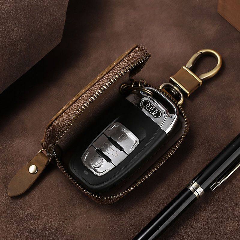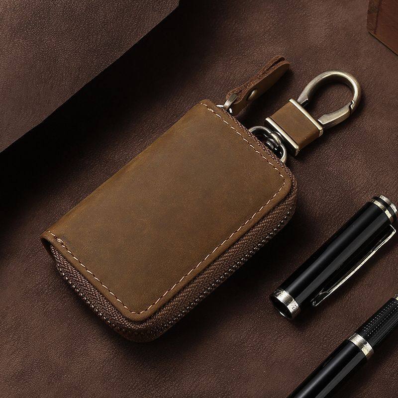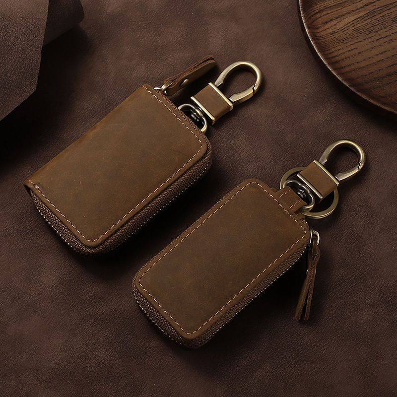 疯马皮汽车钥匙包真皮质感车钥匙皮套欧美复古时尚折叠钥匙保护套