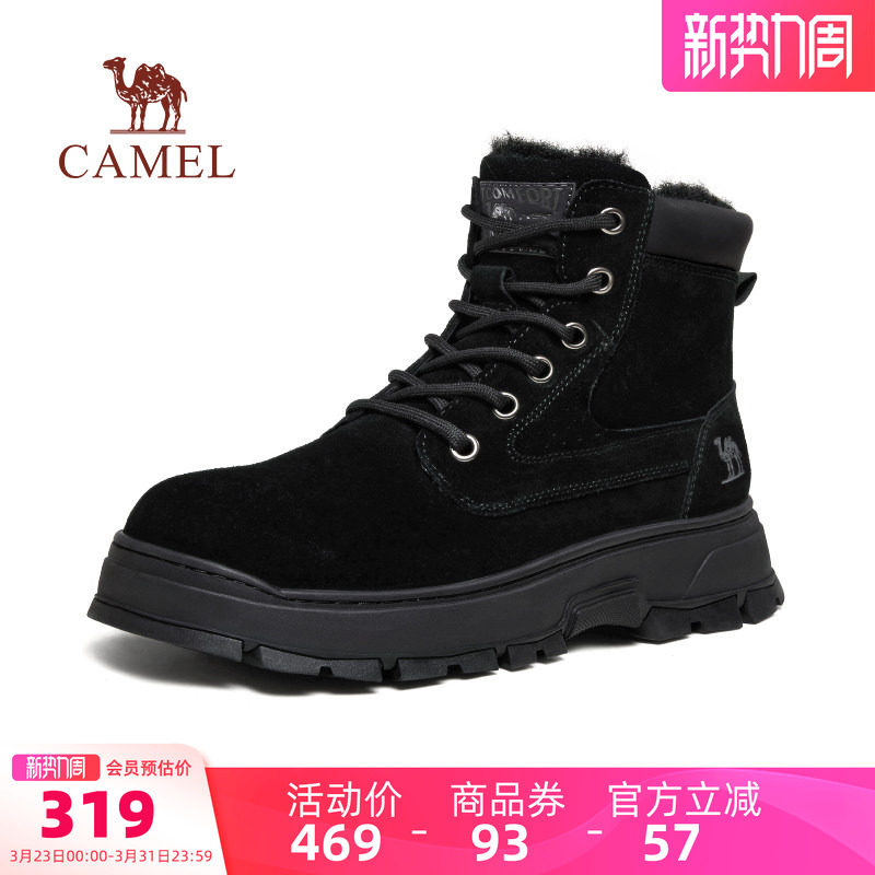 骆驼男鞋2026新款加绒马丁靴保暖潮流厚底休闲工装户外高帮雪地靴