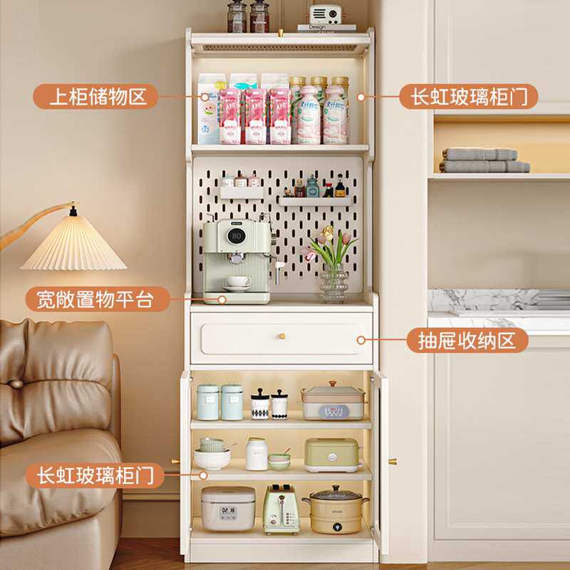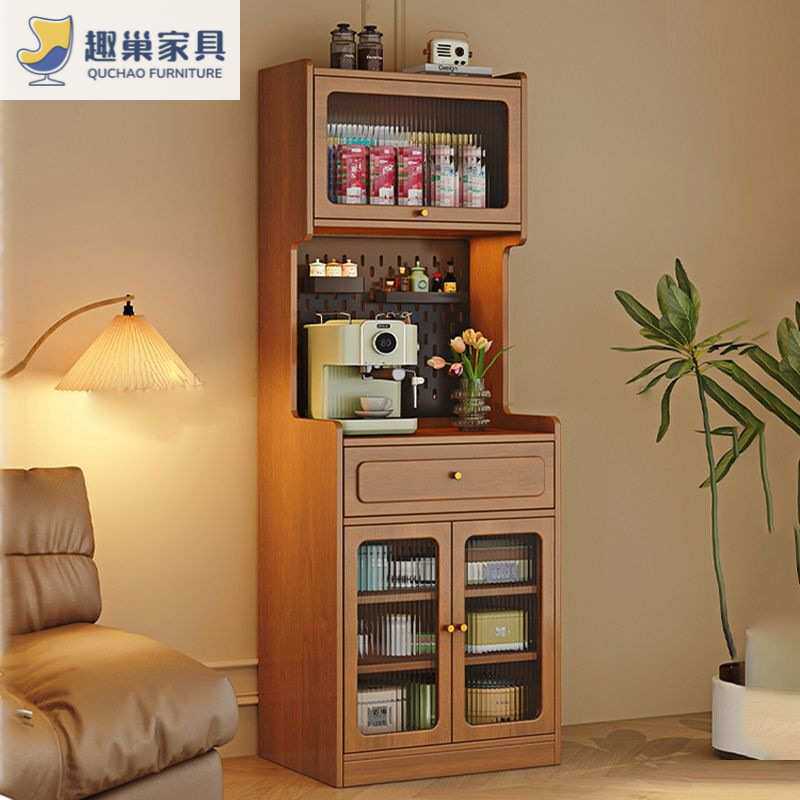 实木餐边柜洞洞板复古窄款置物茶水柜一体小户型厨房收纳储物柜