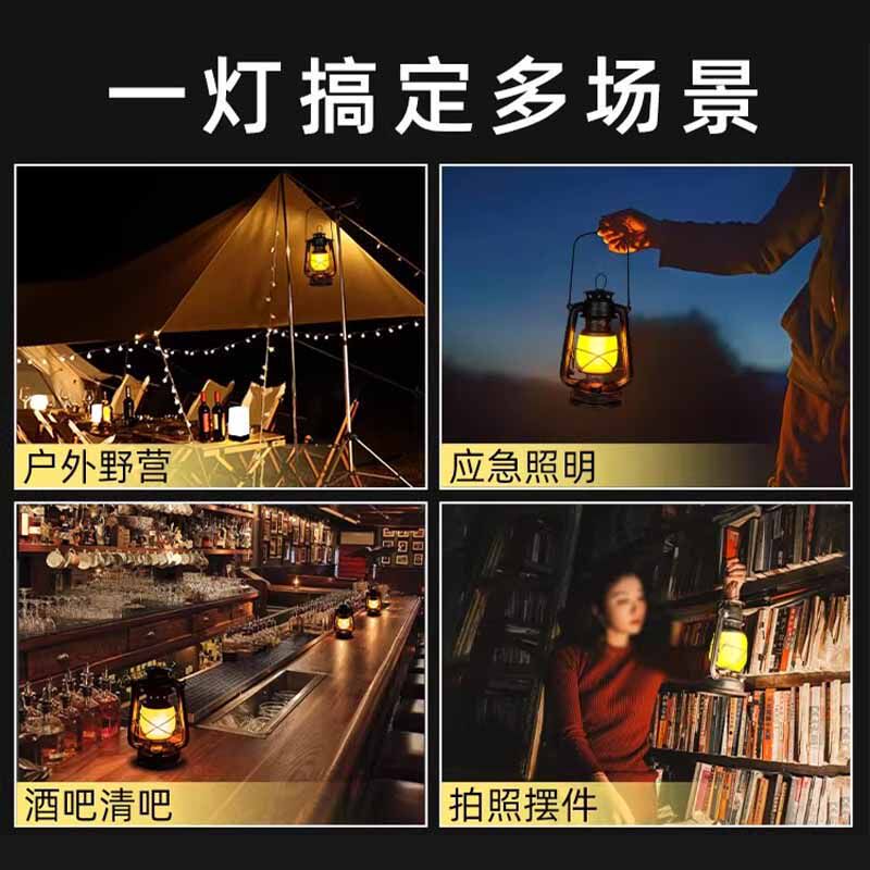 露营灯户外充电复古马灯营地野营氛围煤油手提摆摊帐篷灯装饰火焰