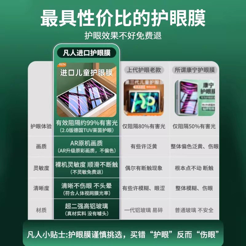现货-即发!绿光强滤蓝光,赠贴膜器
