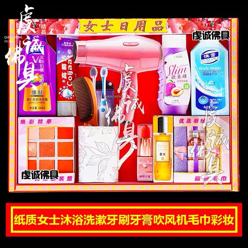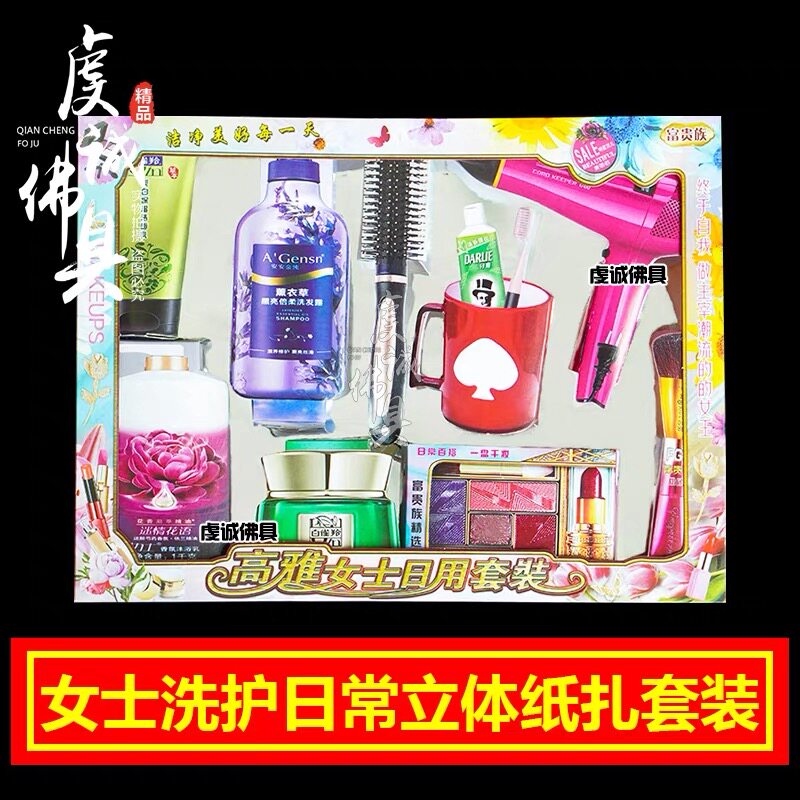 祭祀日常护肤品彩妆吹风机纸钱先人中元节七月半烧纸钱女洗漱用品