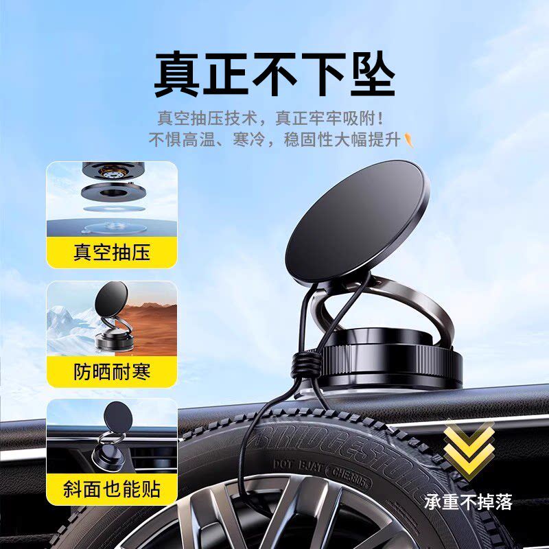 真空吸附磁吸车载手机支架2025新款吸盘车内导航手机架magsafe无线磁吸伸缩折叠便携架子墙壁通用神器