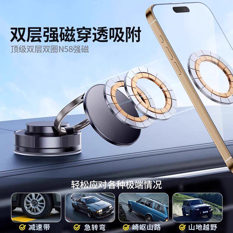 2026新款车载真空吸附手机支架磁吸magsafe车载吸盘车内导航手机架无线伸缩折叠便携架子浴室墙壁通用神器