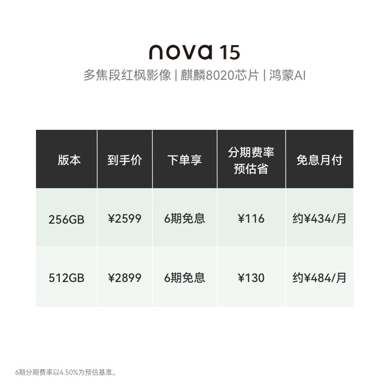 【国家补贴】华为 nova 15 麒麟8020芯片 多焦段红枫影像 北斗卫星消息 华为直面屏智能手机华为官方旗舰店