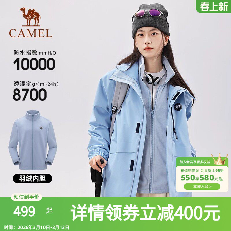 骆驼户外雨神冲锋衣男三合一羽绒服冬季防水外套女三防旅游滑雪服