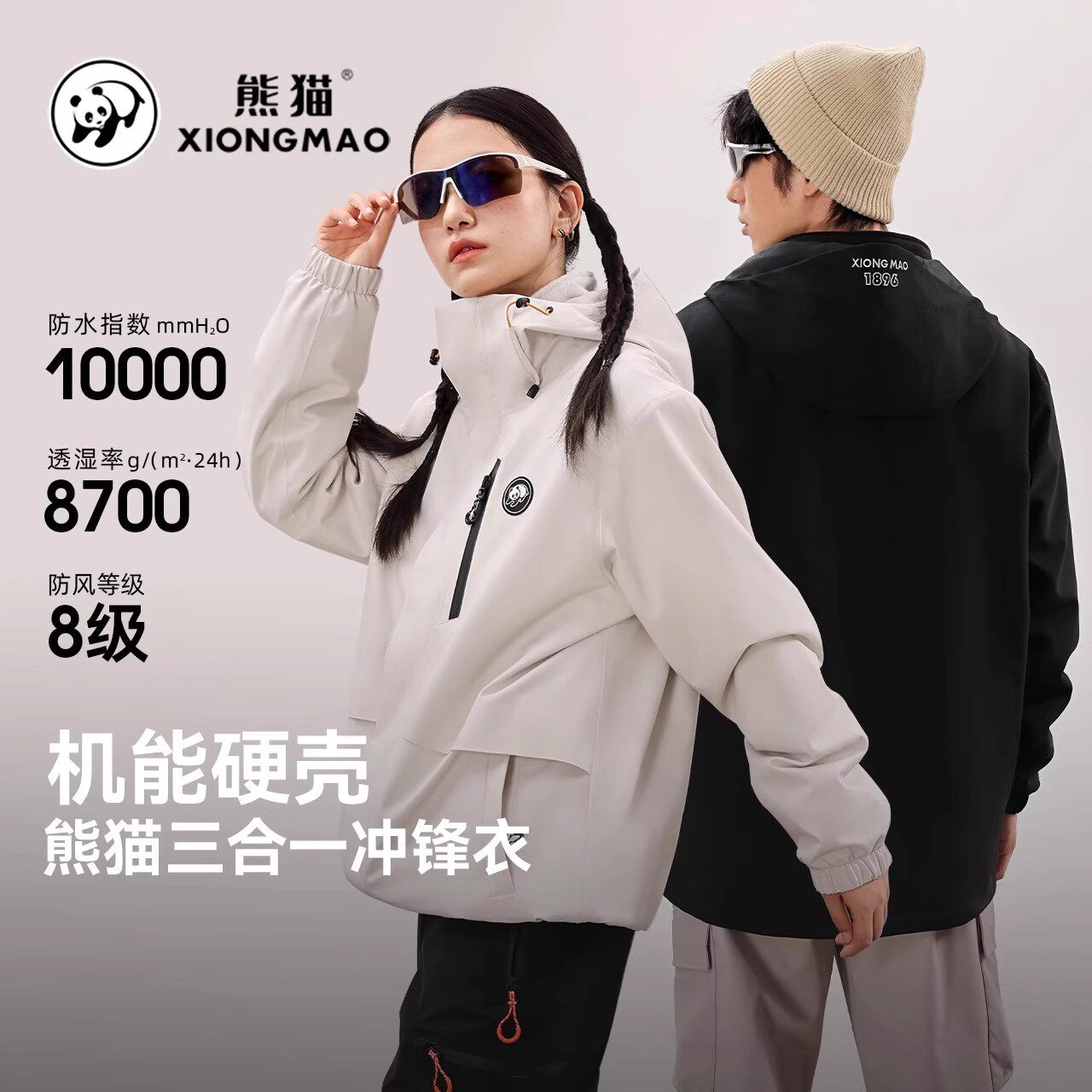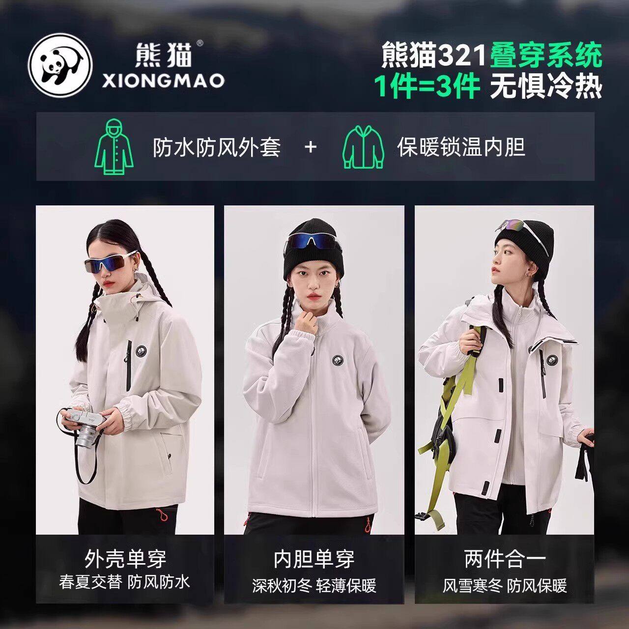 骆驼熊猫冲锋衣三合一户外防水防风秋冬男女同款徒步登山外套
