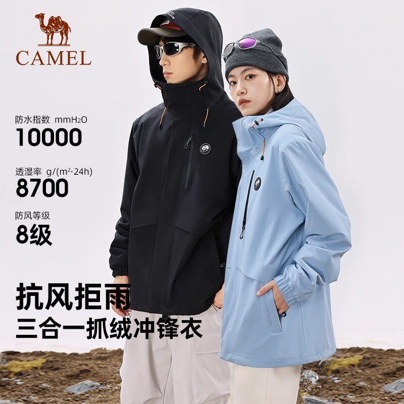 骆驼冲锋衣三合一可拆卸两件套男女情侣款外套户外防水旅游登山服