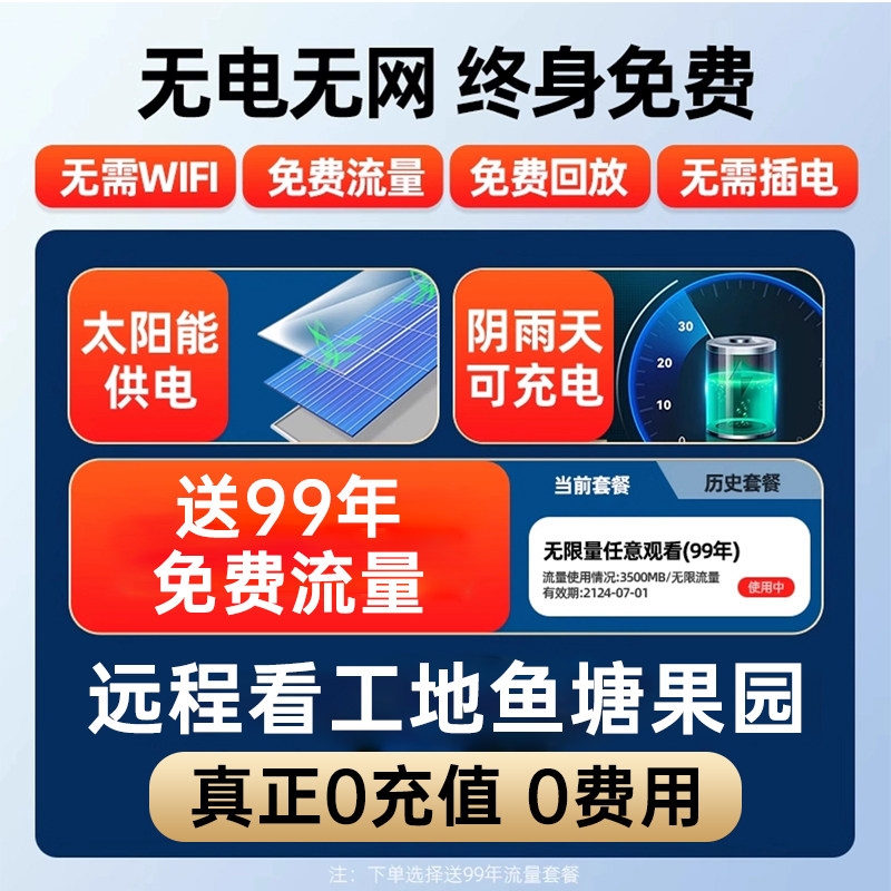 奥克斯监控摄像头太阳能无电无网360度无死角室外免插电4G摄影头