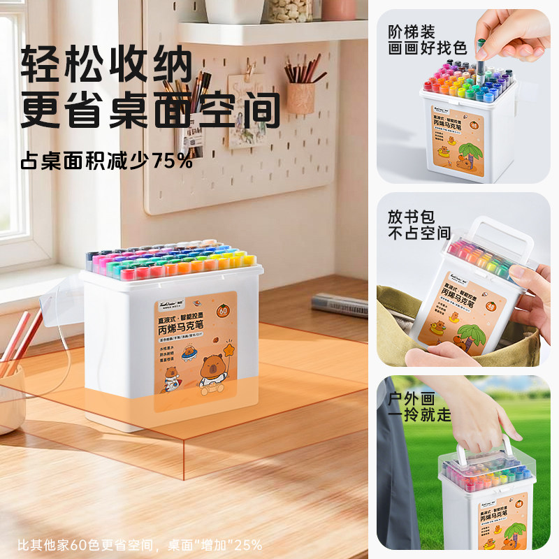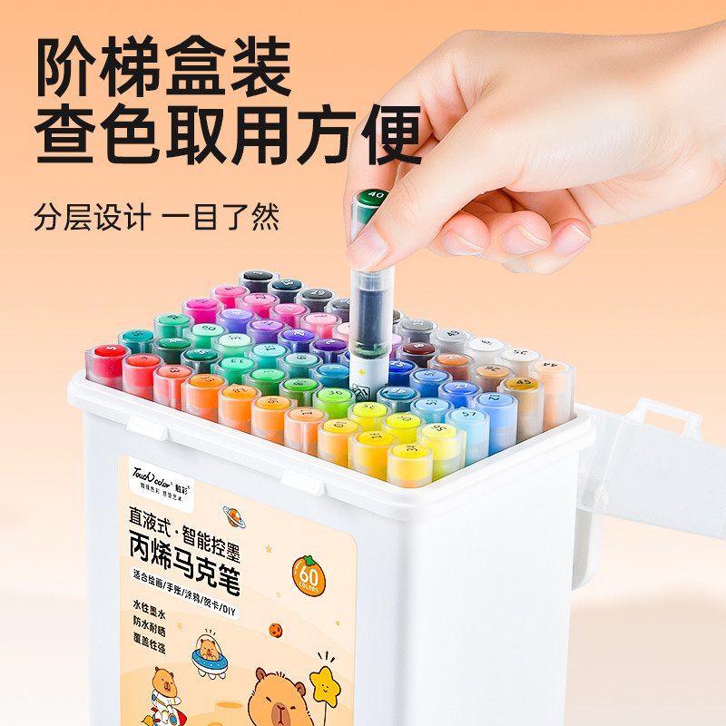 60色48色大容量丙烯马克笔盒装儿童专用可叠色不透纸幼儿园学生版软头丙烯笔可水洗水性水彩笔小孩画画笔