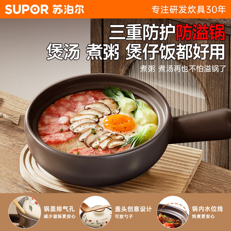 苏泊尔小砂锅一人食燃气灶专用家用煲汤煲仔饭沙锅耐高温干烧不裂