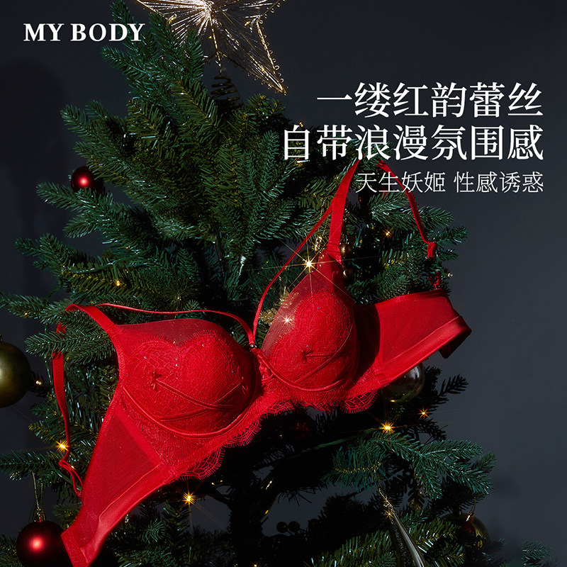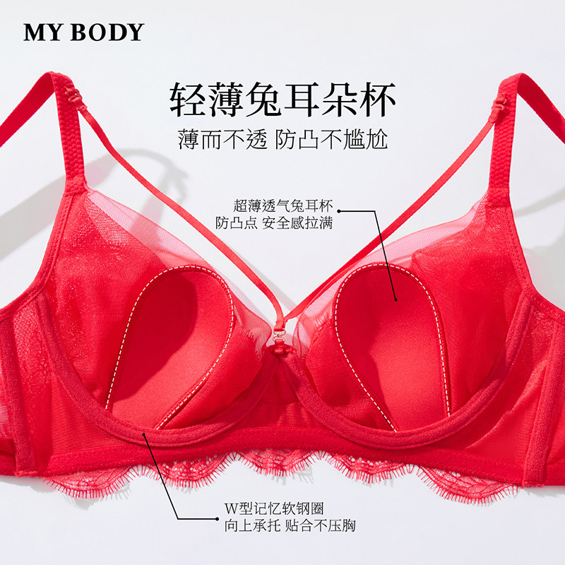 【妖姬】MYBODY商场同款本命年红色内衣大胸显小性感蕾丝文胸胸罩