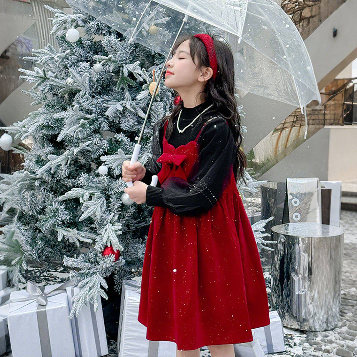 [保暖加厚]连衣裙女童红色小香风背心裙子大童深秋宝宝秋冬衣服