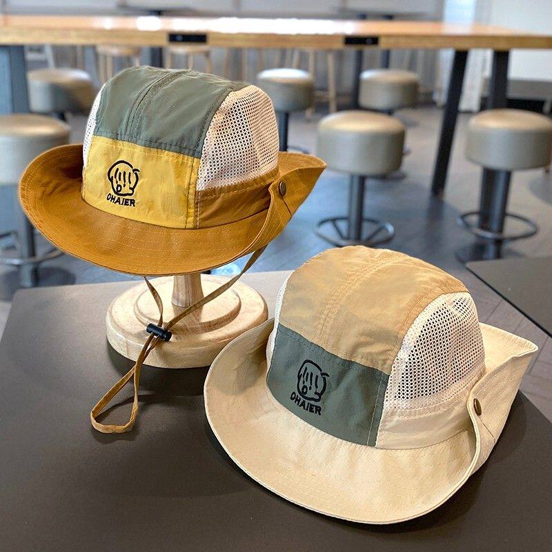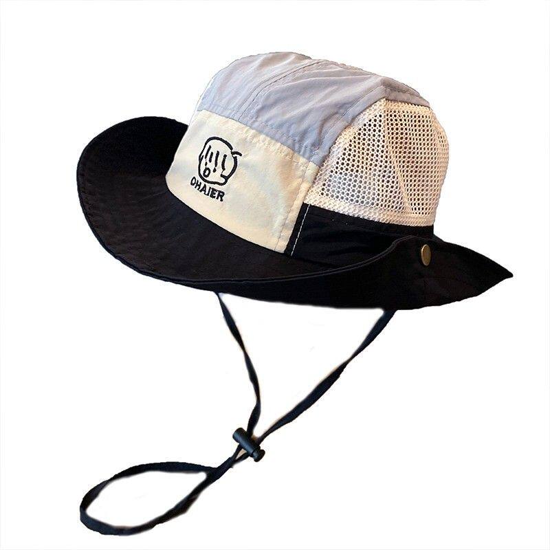 儿童帽子夏季薄款透气网眼男女童大檐速干渔夫帽防晒登山宝宝太阳