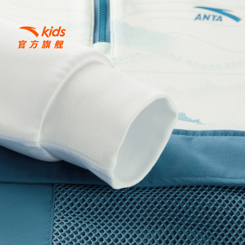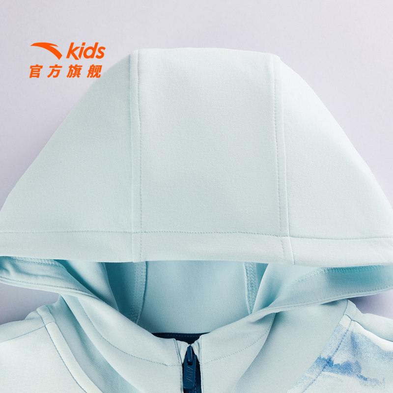 安踏儿童卫衣春装新款2025男童户外潮酷印花套头衫宽松大童连帽衫