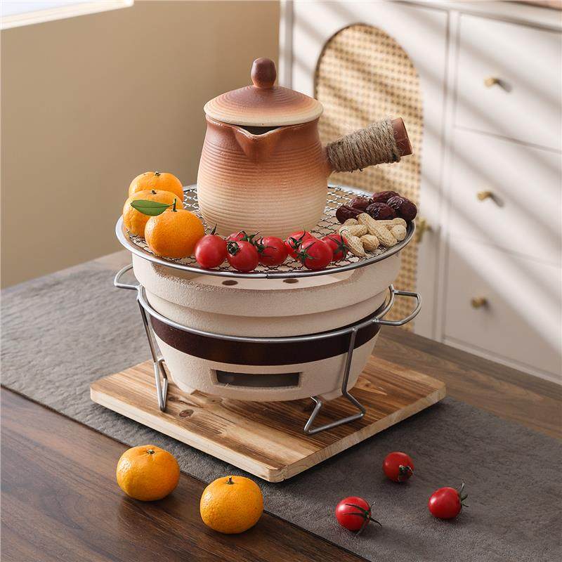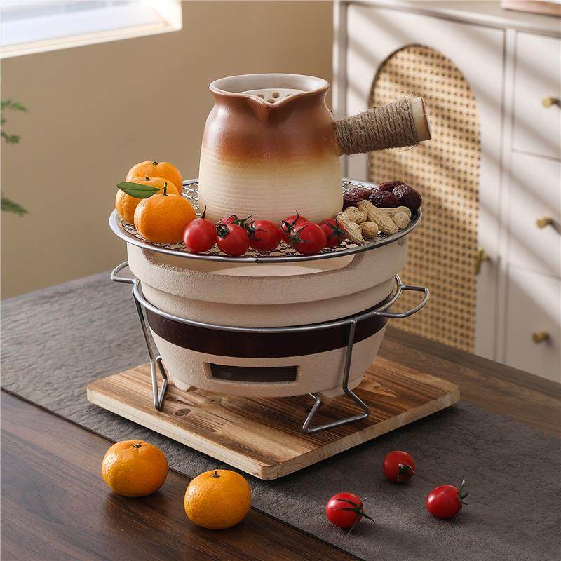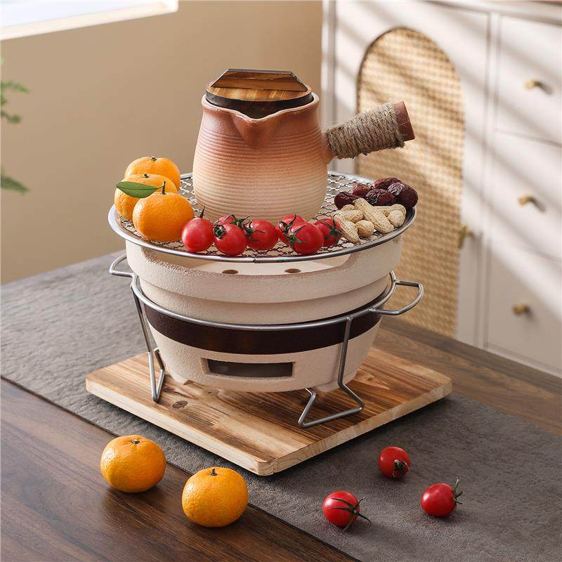 围炉煮茶室内外老式炭炉家用打边炉泥碳炉户外烧烤陶土烤奶罐罐壶