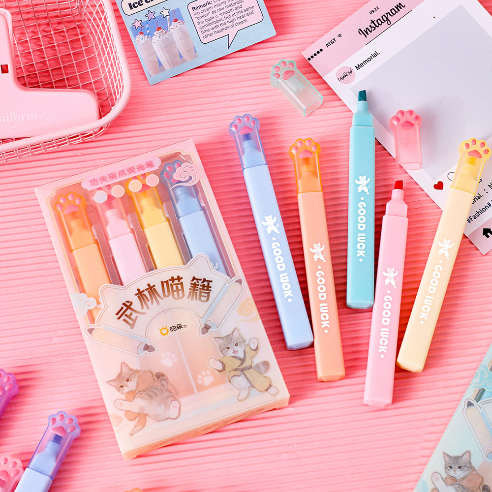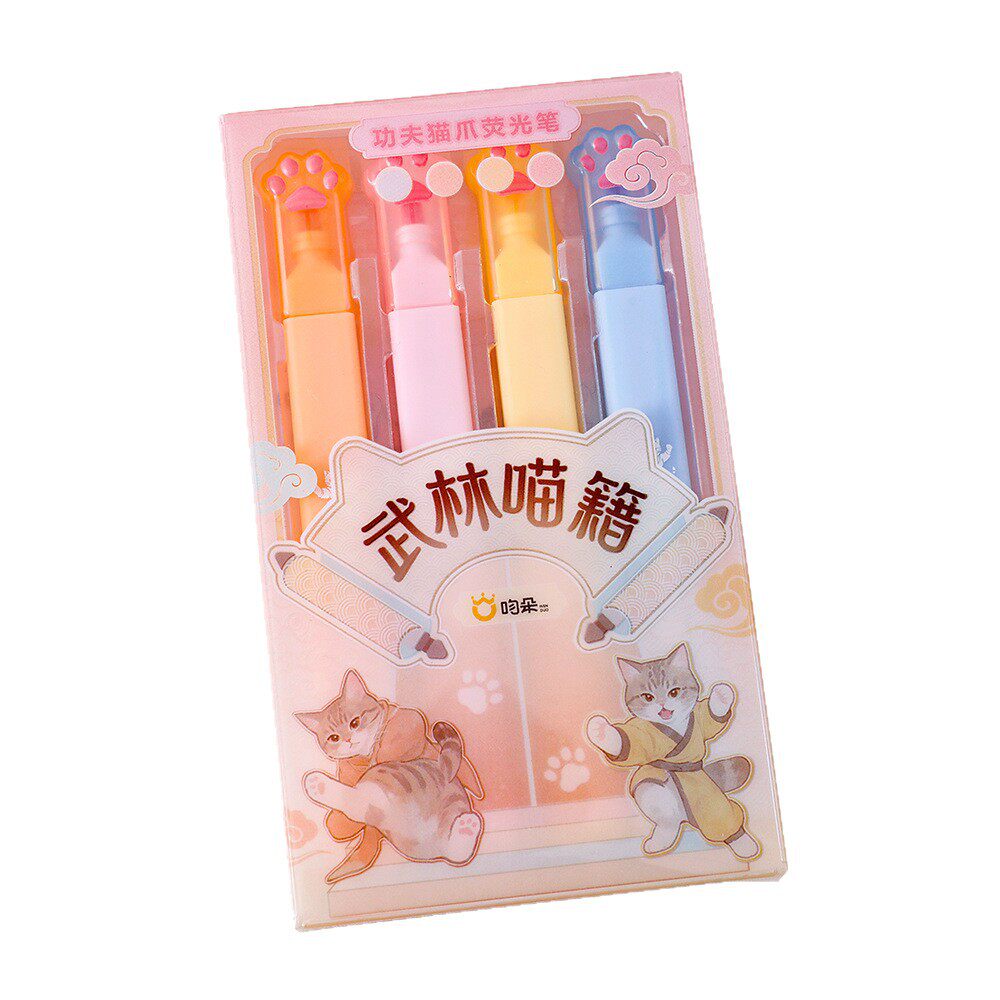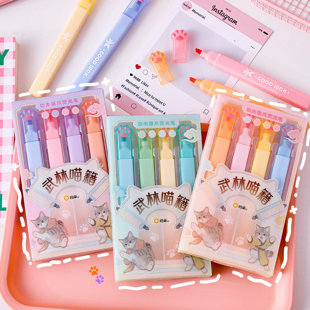 50盒功夫猫爪荧光笔学生用划重点彩色记号笔高颜值猫咪文具手账标