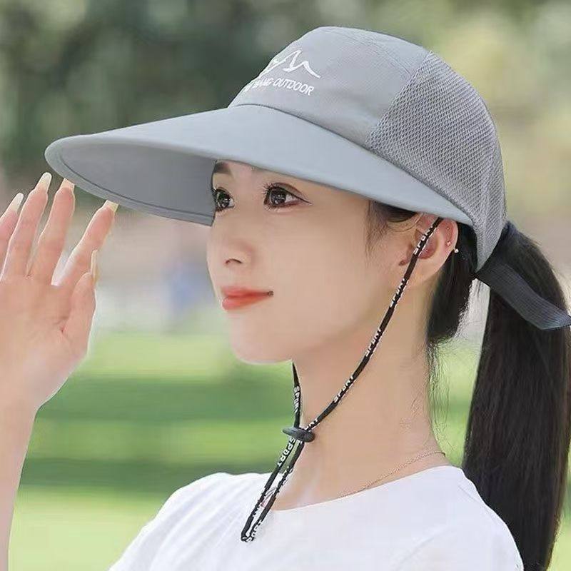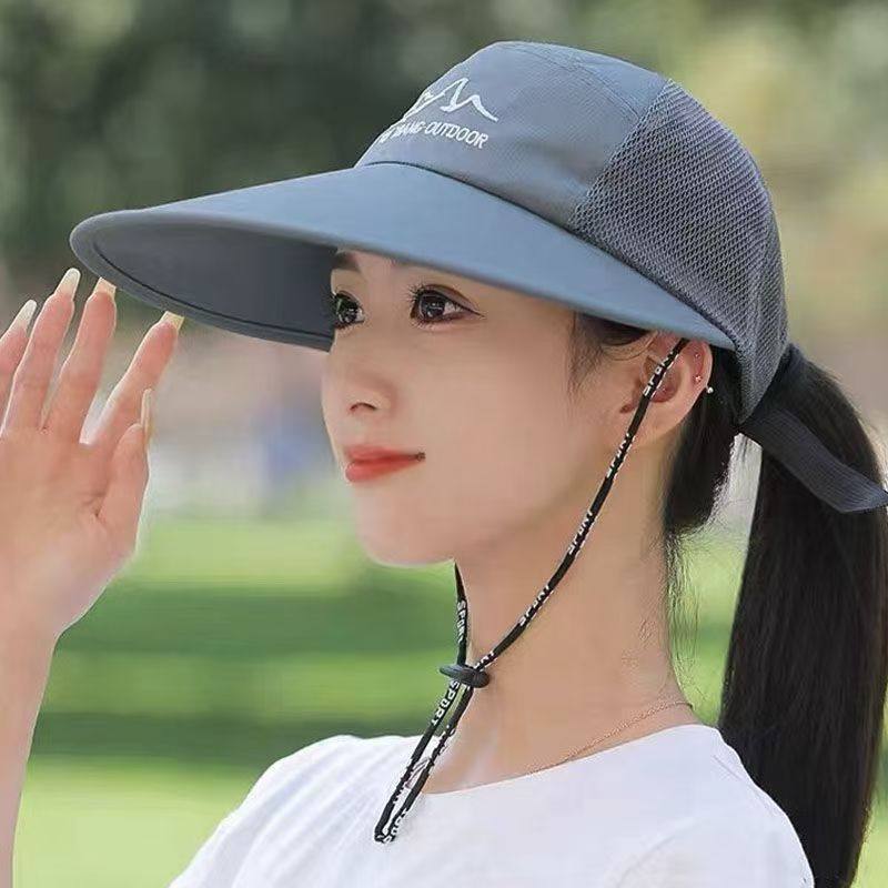 防晒透气遮阳太阳帽女防紫外线时尚防风绳帽潮子帽子秋季大帽檐