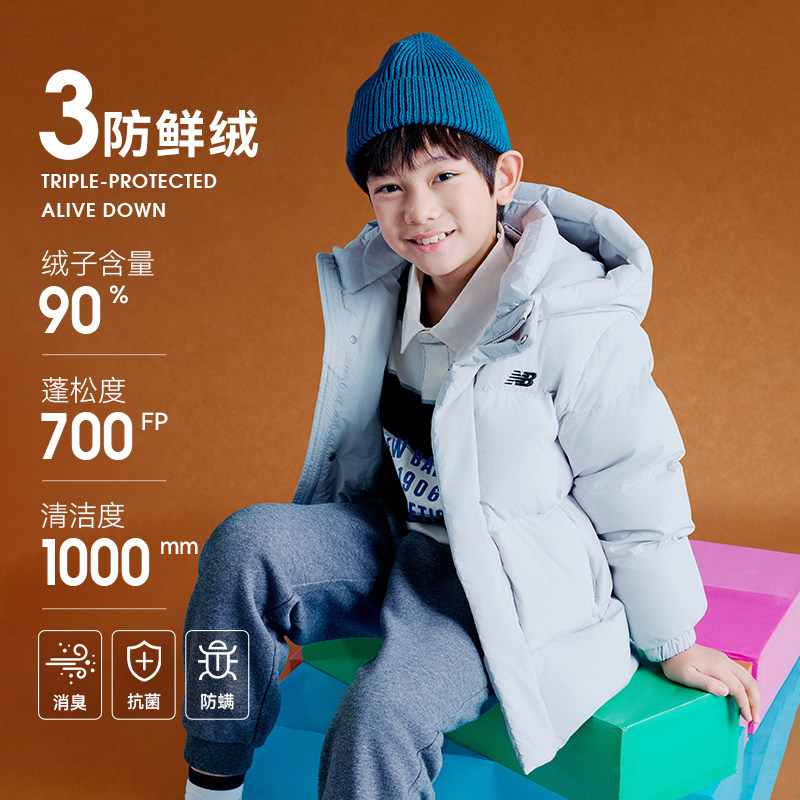 【90%绒子含量】nb官方童装 冬季新品大绒朵鸭绒连帽保暖羽绒服