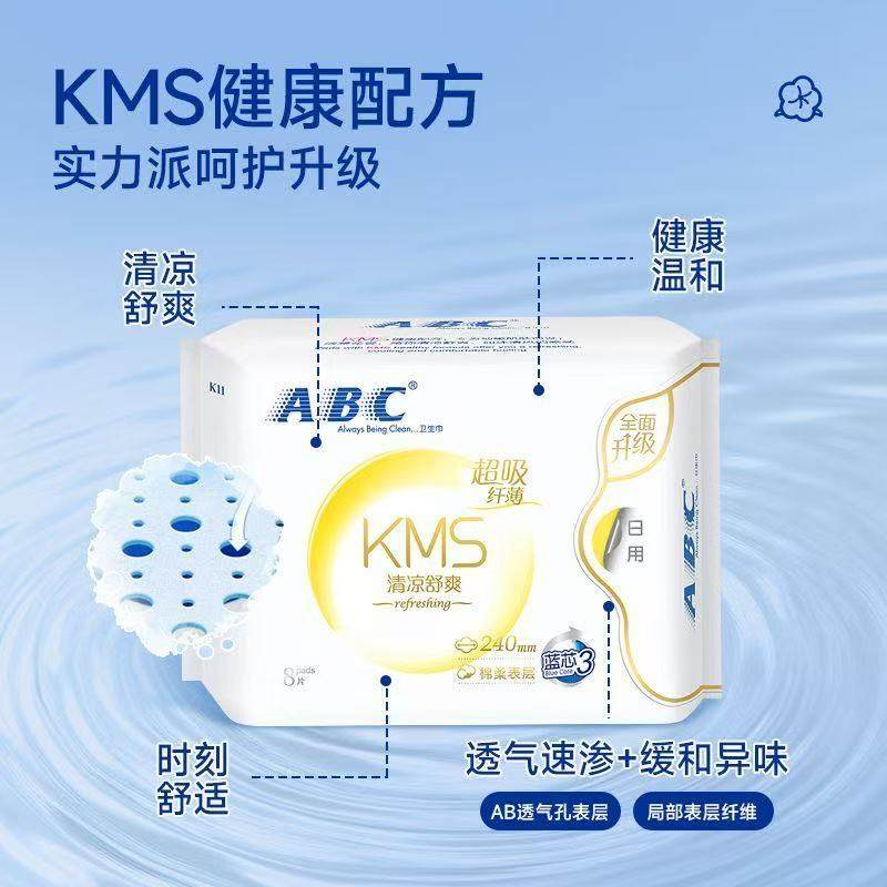 ABC卫生巾日用夜用姨妈巾护垫组合KMS透气湿巾护理液护翼清凉防漏