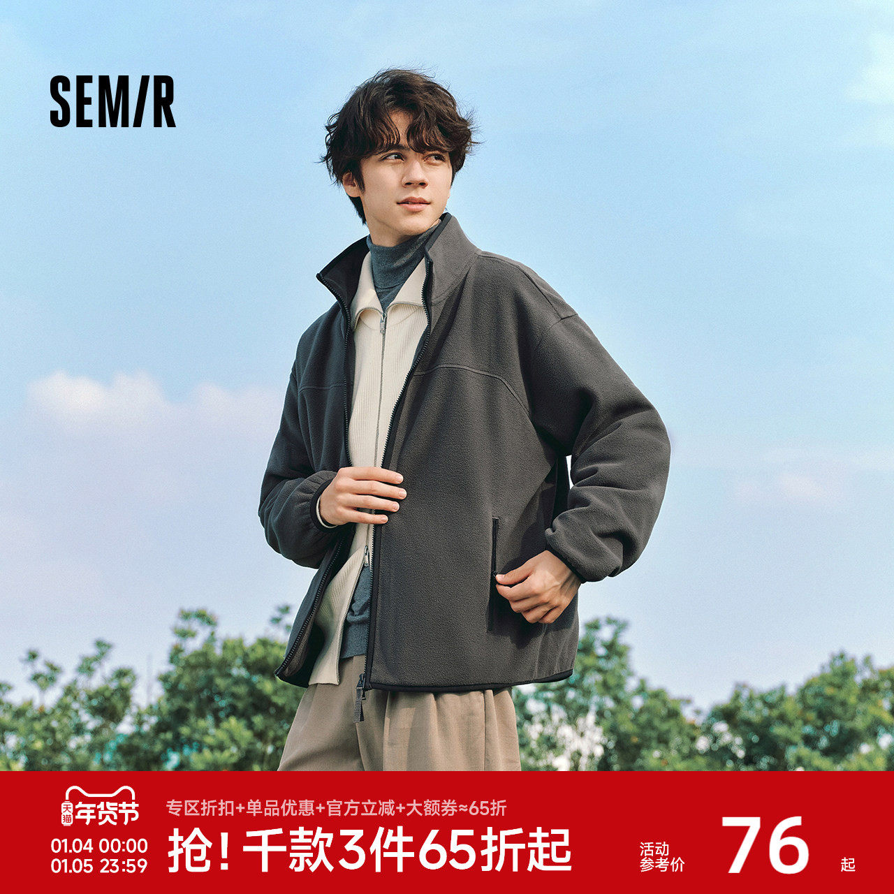 森马外套男2023冬季新款抗静电摇粒绒情侣夹克时尚舒适户外风上衣