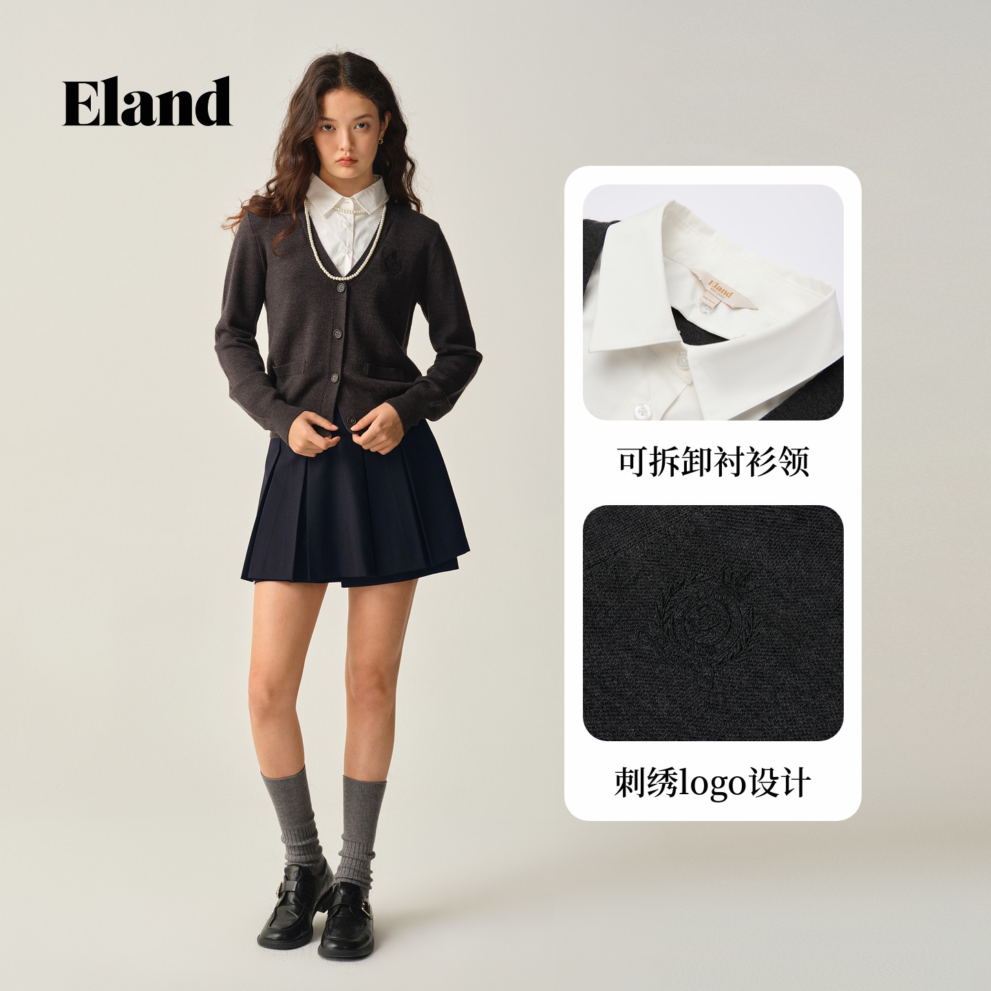 【可机洗羊毛】Eland衣恋毛针织衫女假两件翻领上衣2025冬季新款