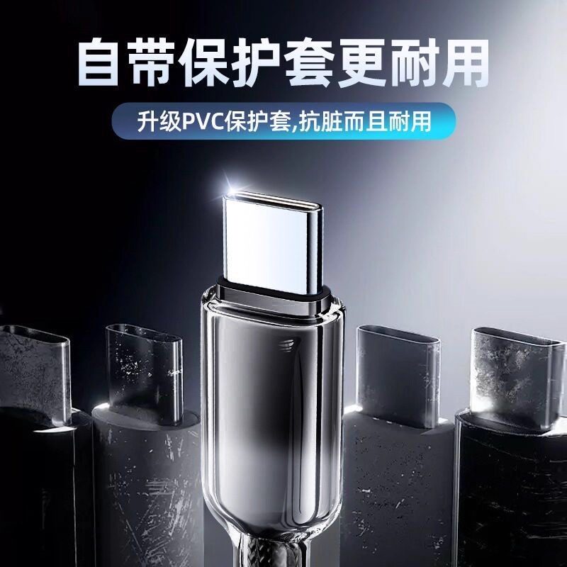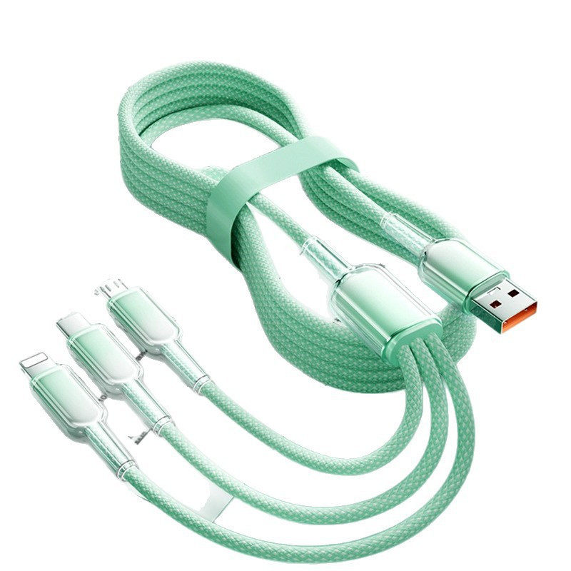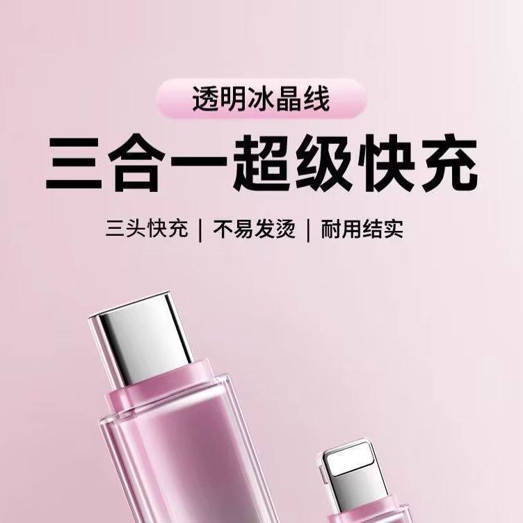 冰晶渐变编织三合一typec充电线120W快充原一拖三usb手机数据线适用苹果安卓华为手机充电器线