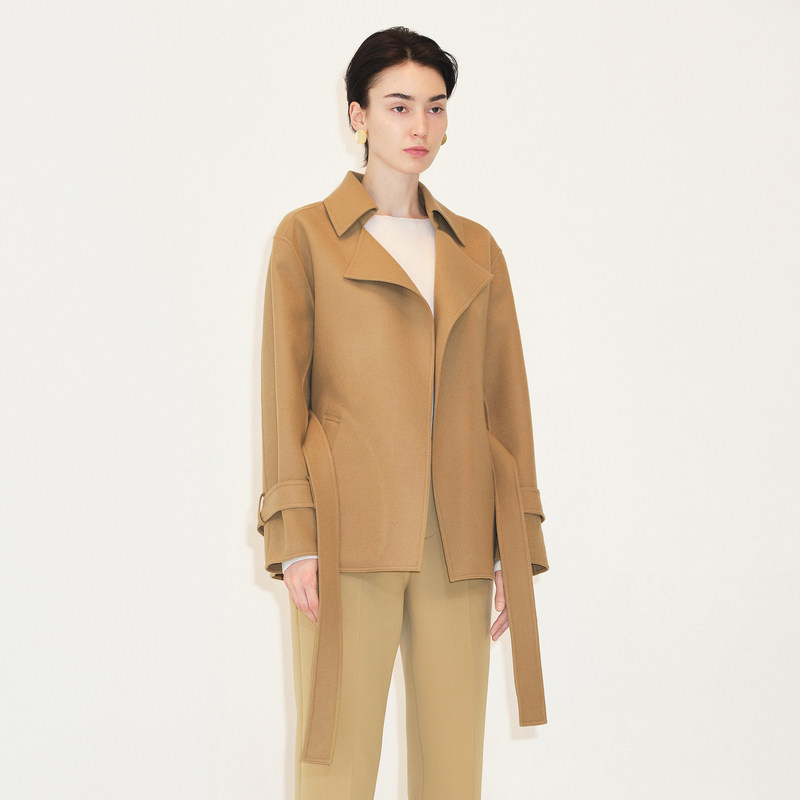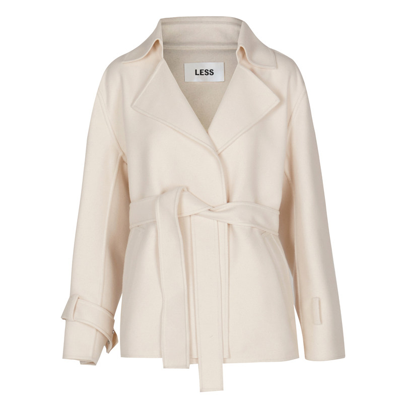 LESS冬季绵羊毛大衣女翻领系带短款羊毛呢外套2M0810340