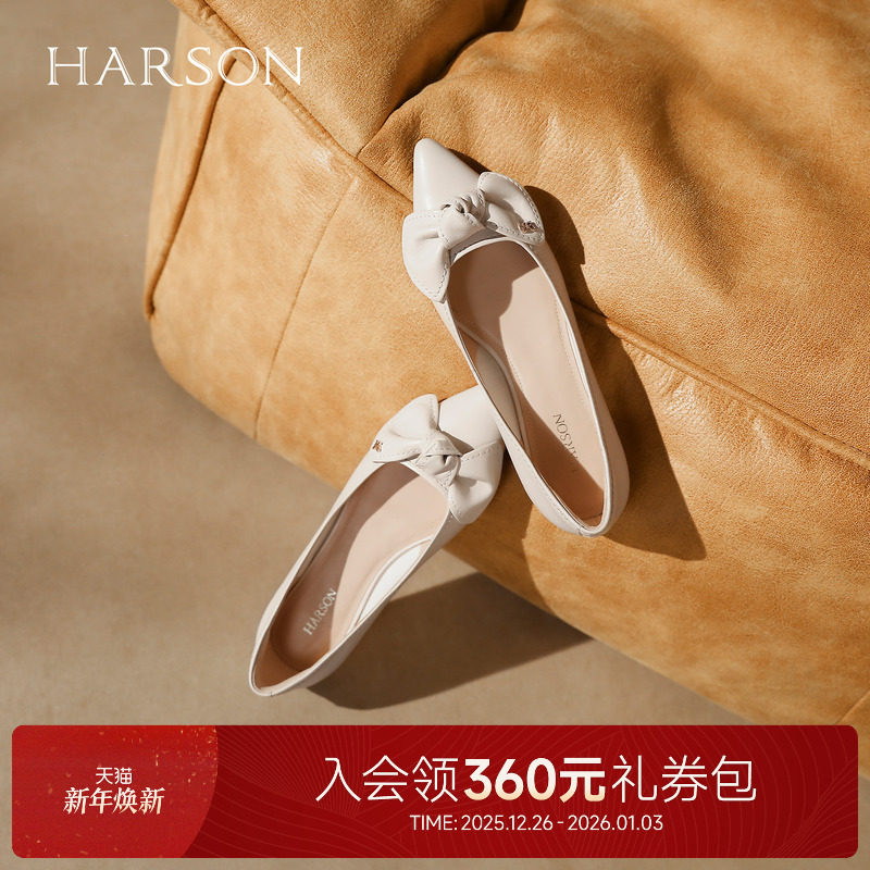 哈森/HARSON【职场韵味】25秋新款尖头蝴蝶结羊皮革通勤浅口单鞋