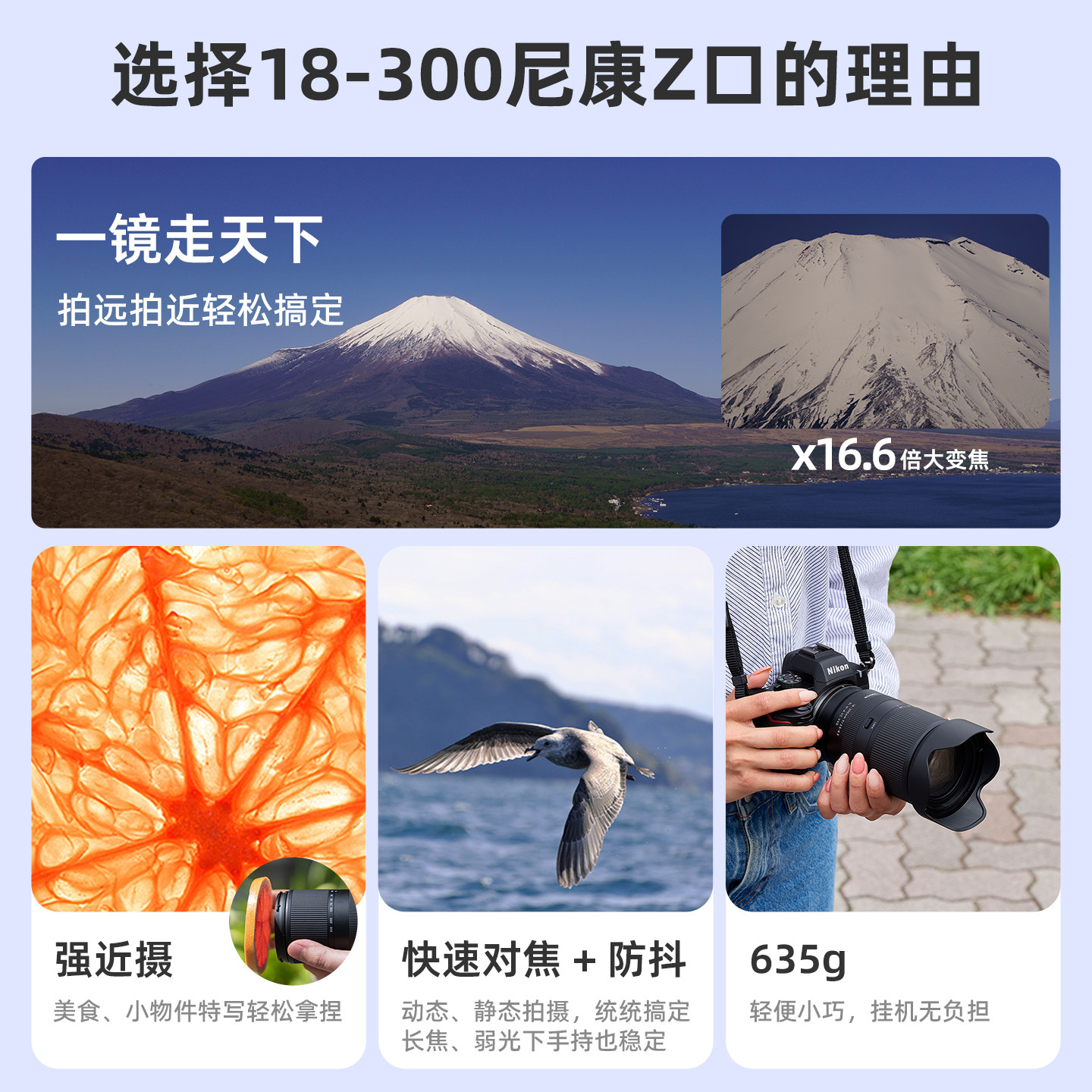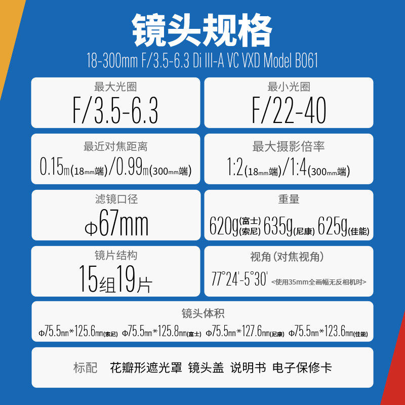 腾龙(Tamron)18-300mm E卡口微单镜头B061大变焦18300