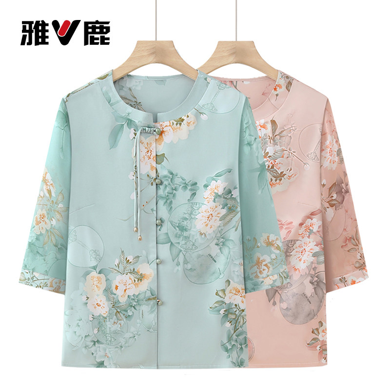 雅鹿正品妈妈夏季上衣大码奶奶装衬衫老太太衣服新中式款洋气薄款