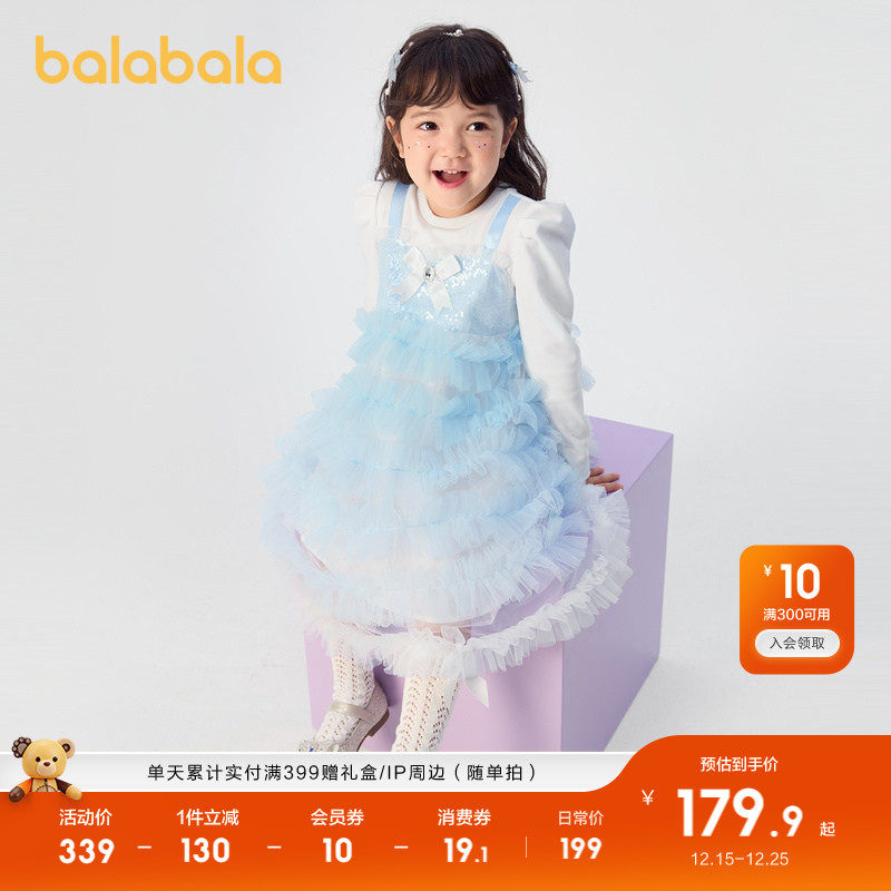 巴拉巴拉童装儿童裙子女童小童宝宝春秋装网纱蛋糕假两件连衣裙潮