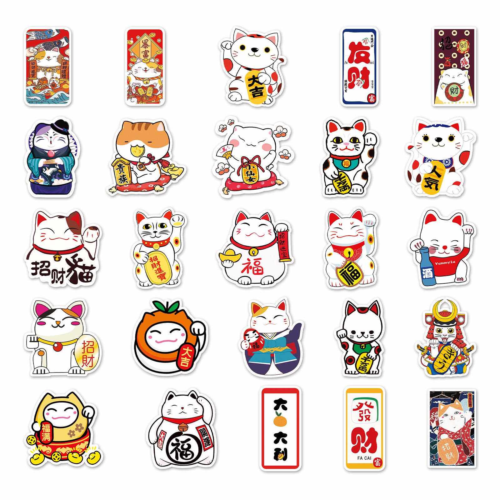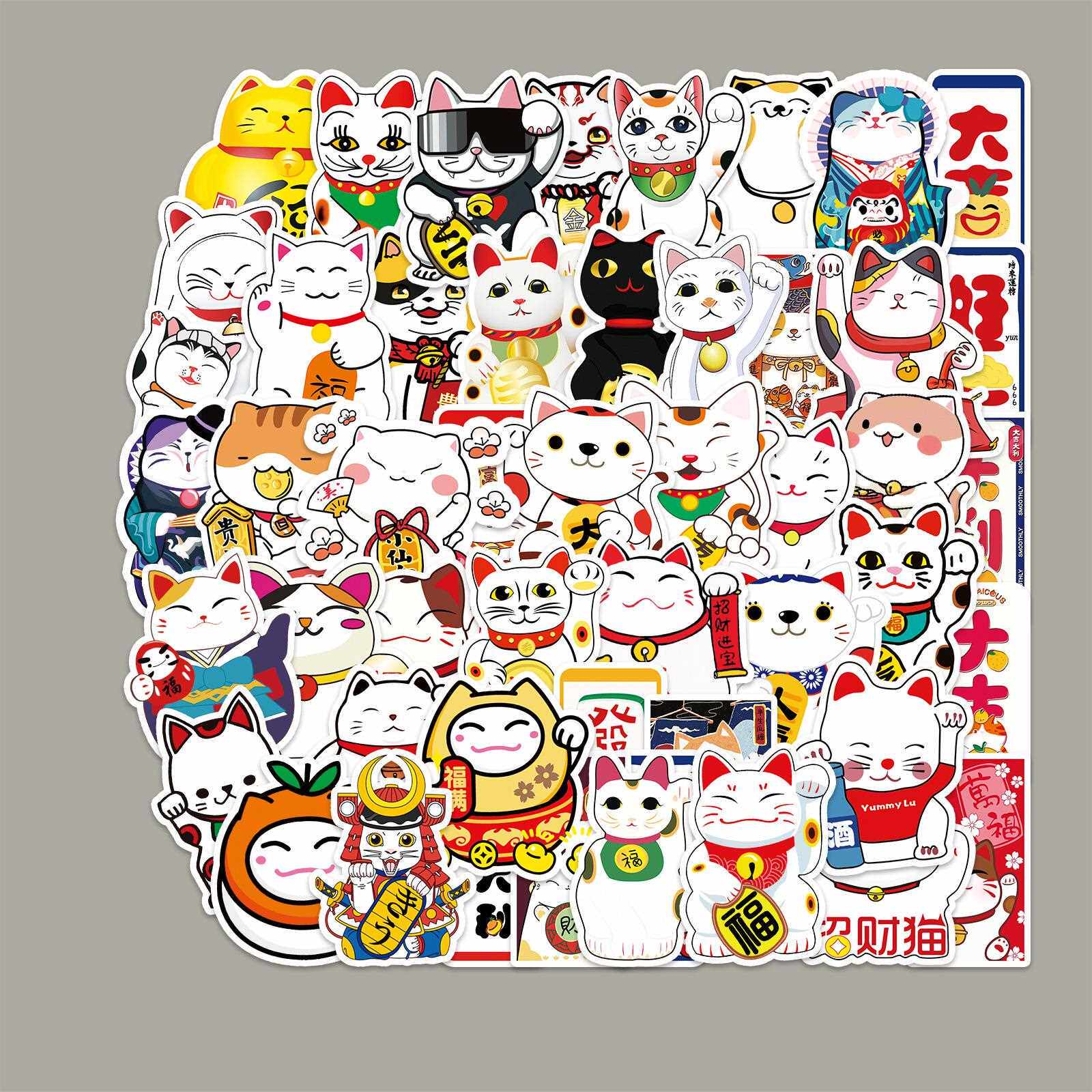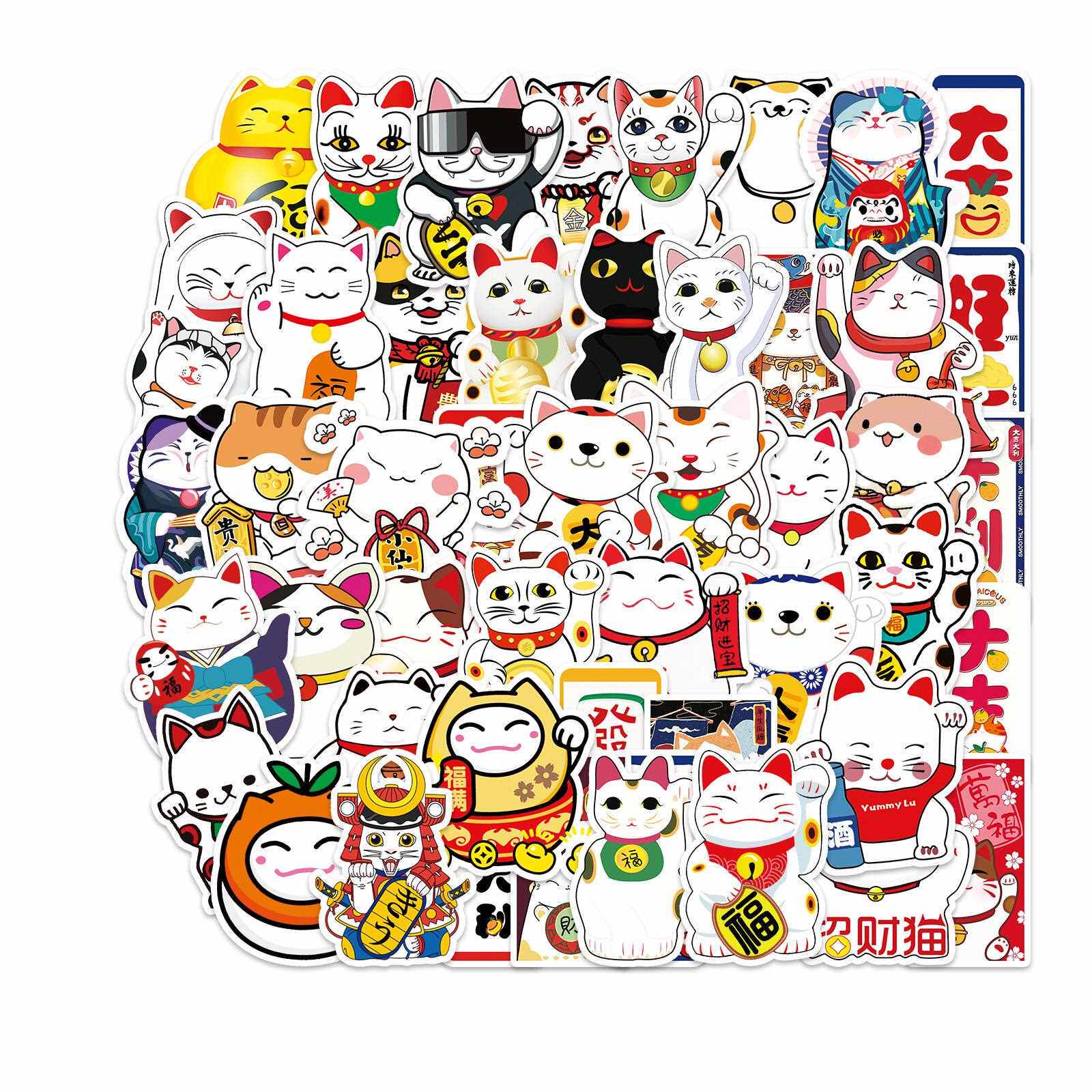 新款直销55张招财发财猫卡通小猫咪笔记本行李箱汽车滑板车防水装