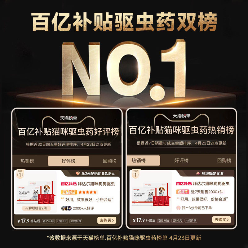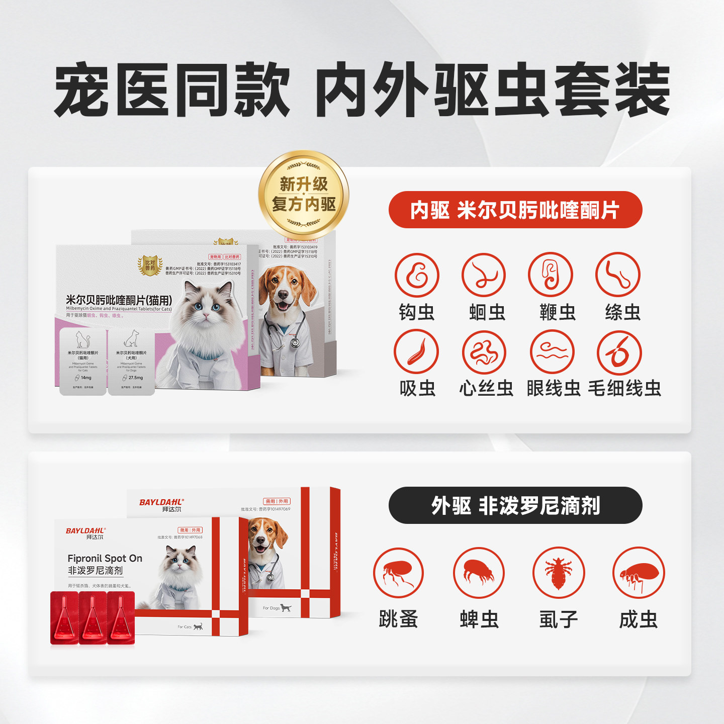 拜达尔狗狗猫咪驱虫药体内外一体宠物跳蚤虱子非泼罗尼滴剂吡喹酮