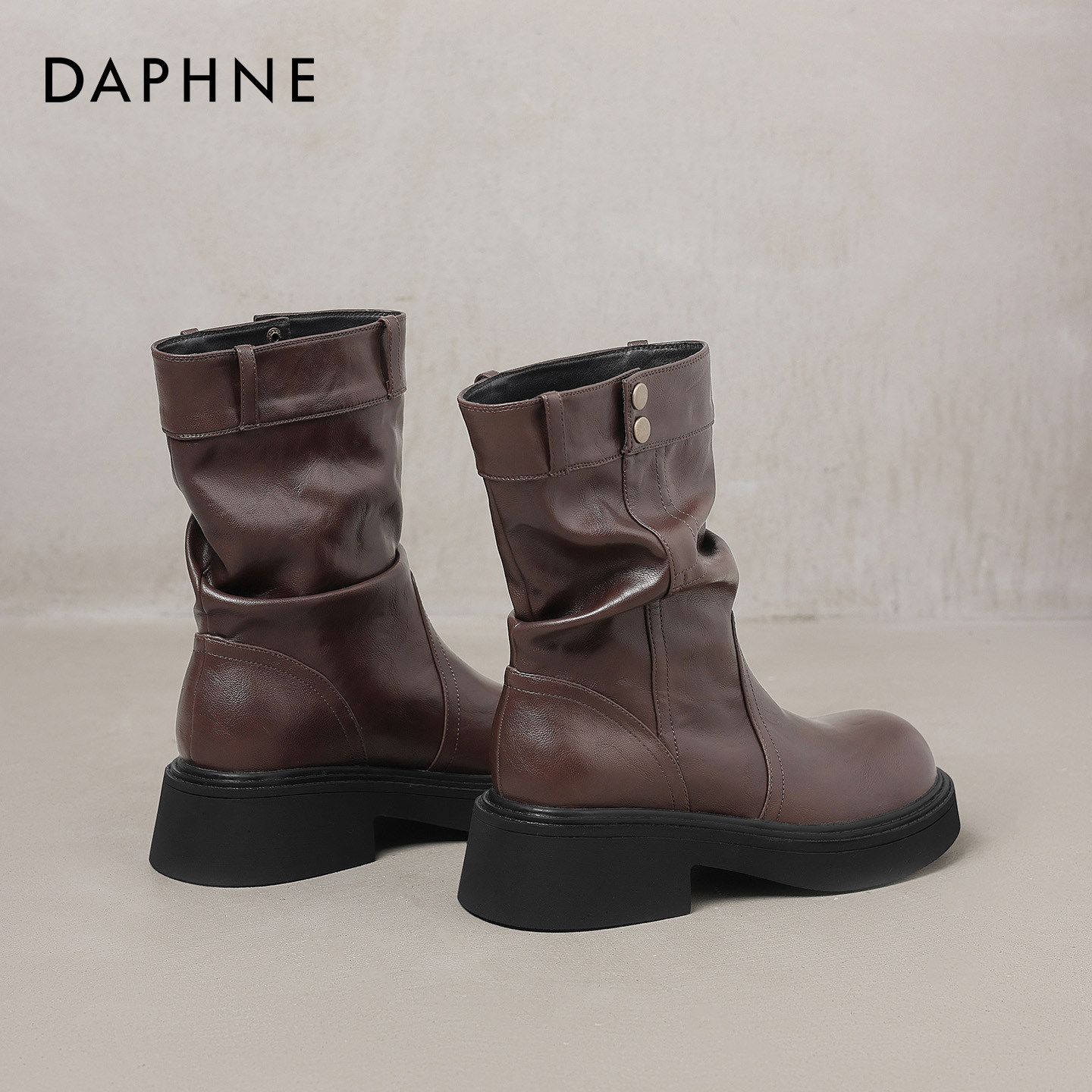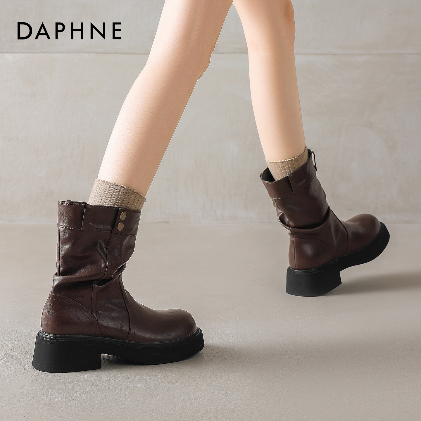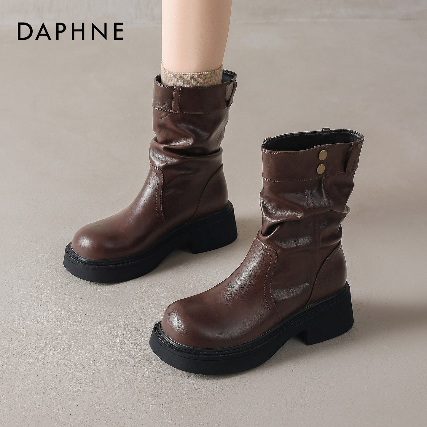 达芙妮黑色短靴女2026新款春季英伦风小个子厚底马丁靴配裤子靴子