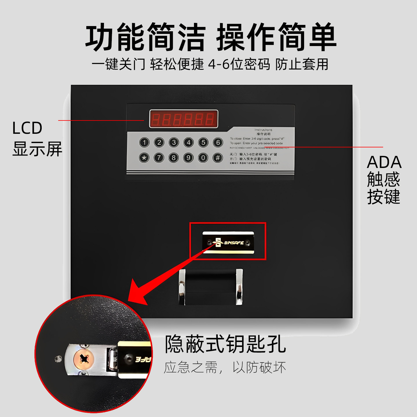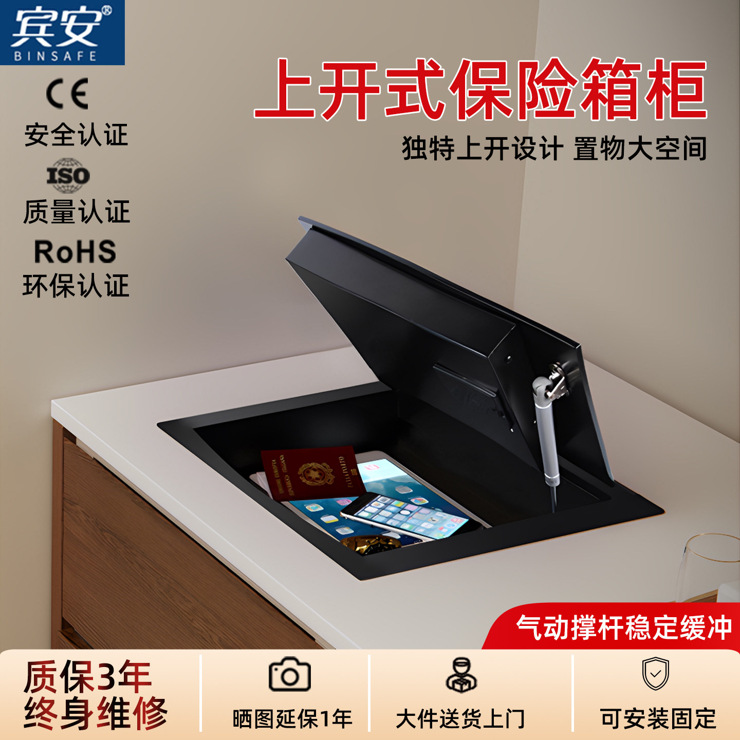 宾安全钢上翻式保险箱家用小型保险柜上开式上翻酒店客房保管箱隐藏式保险柜衣柜嵌入式抽屉保险柜入地入柜