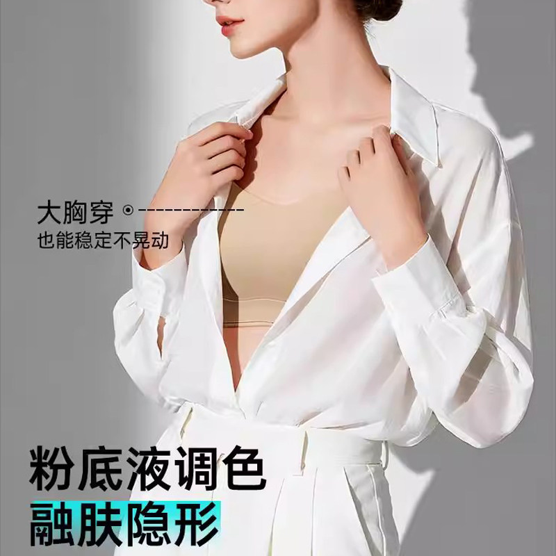 无痕美背抹胸内衣女小胸聚拢可外漏细肩带一体固定杯背心式文胸罩