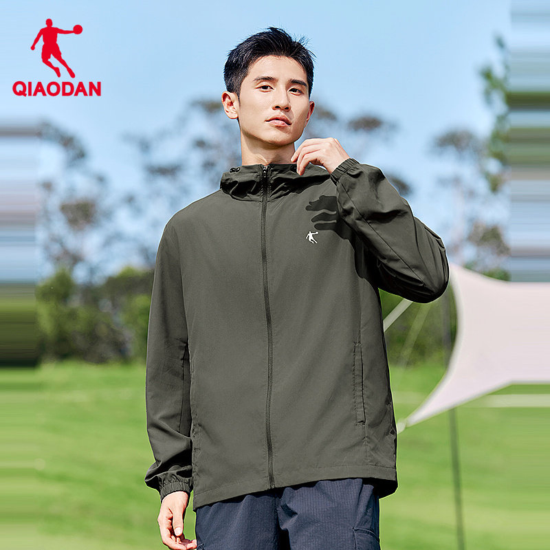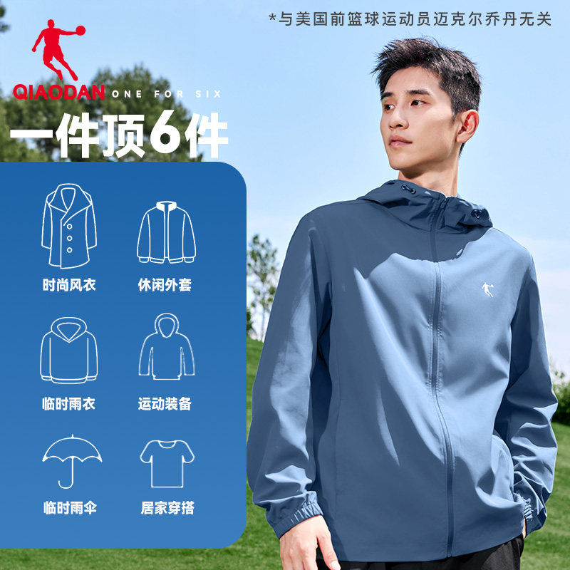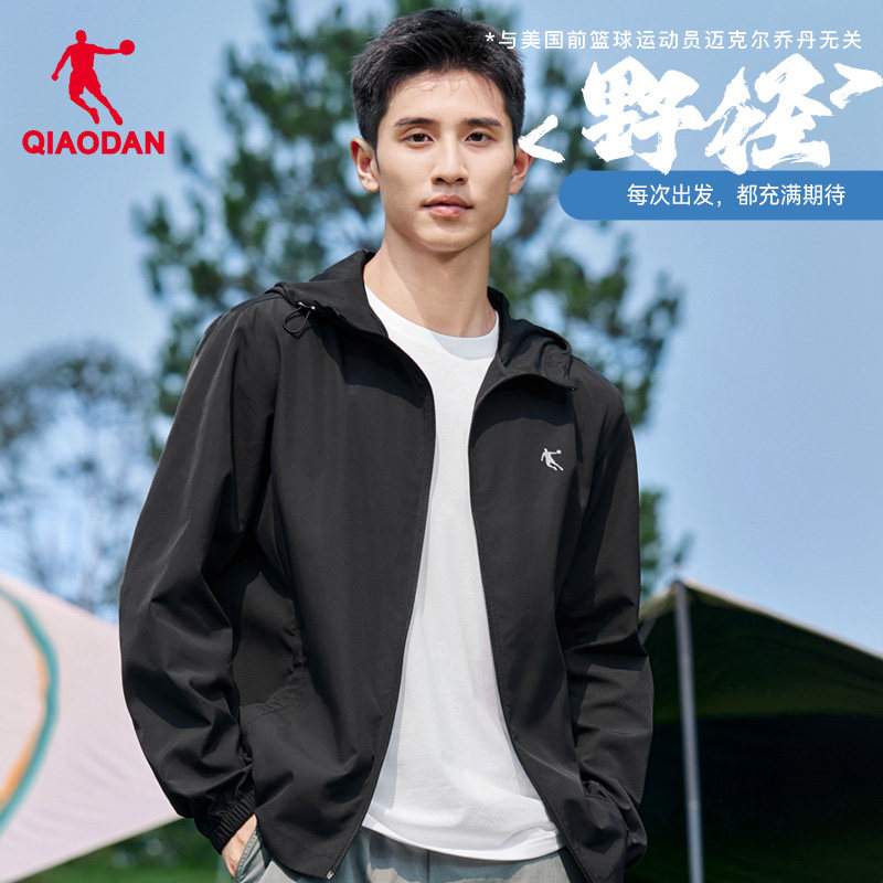 乔丹户外运动风衣男防风2025冬季新款梭织单层骑行冲锋连帽外套男