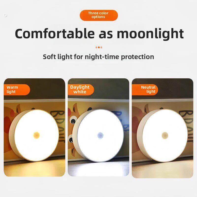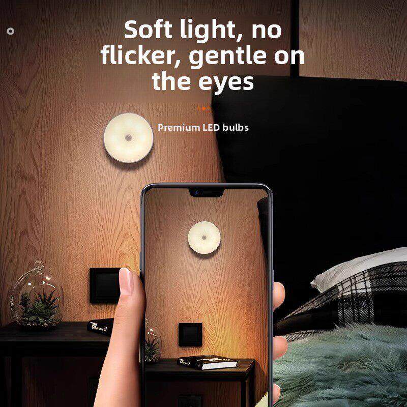 人体自动感应灯小夜灯卧室床头充电人来即亮厕所楼梯夜灯睡眠夜间