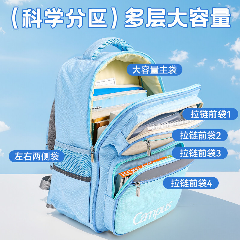 日本KOKUYO国誉Campus系列多层收纳书包初中小学生舒适柔软透气大容量双肩包高中生高颜值纯色简约背包女