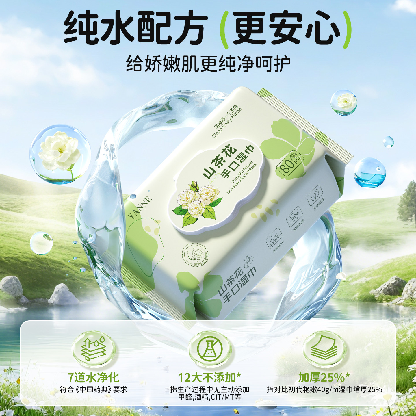洁云纯水婴儿湿巾纸新生宝宝手口专用家庭用大包湿纸巾实惠装80片