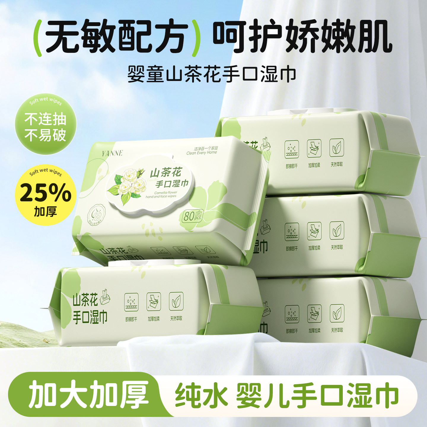 纯水婴儿湿巾新生宝宝手口屁专用儿童加大加厚家庭用装大包湿纸巾