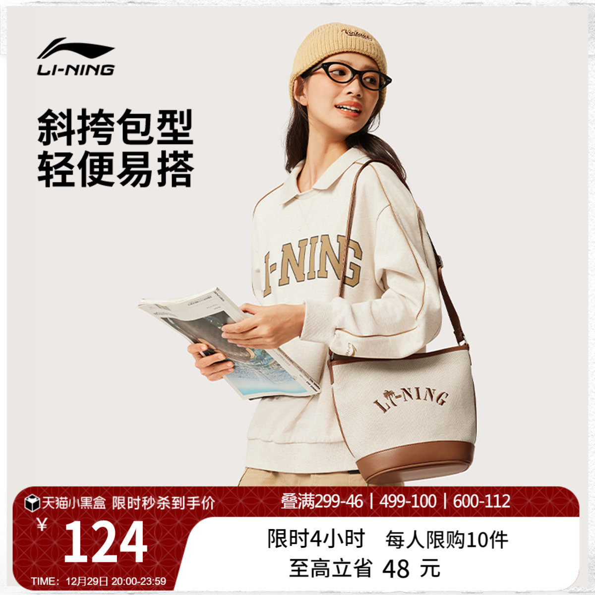 李宁斜挎包官方男女情侣水桶包经典休闲百搭单肩包便捷出行挎包