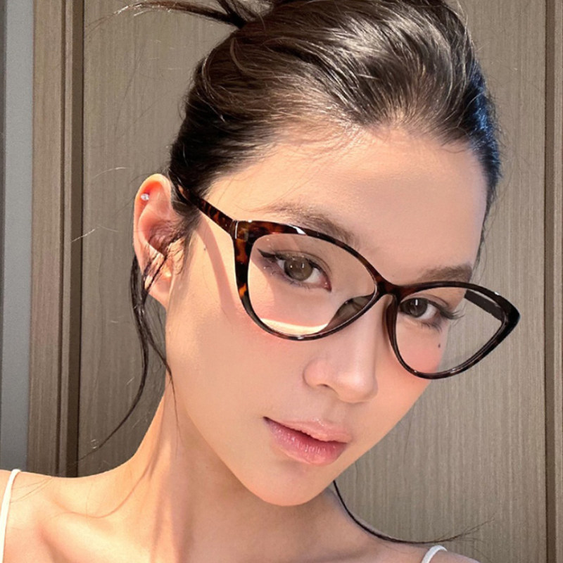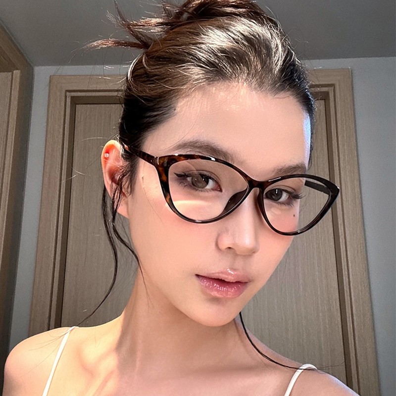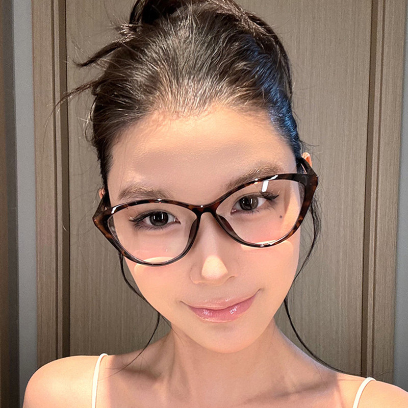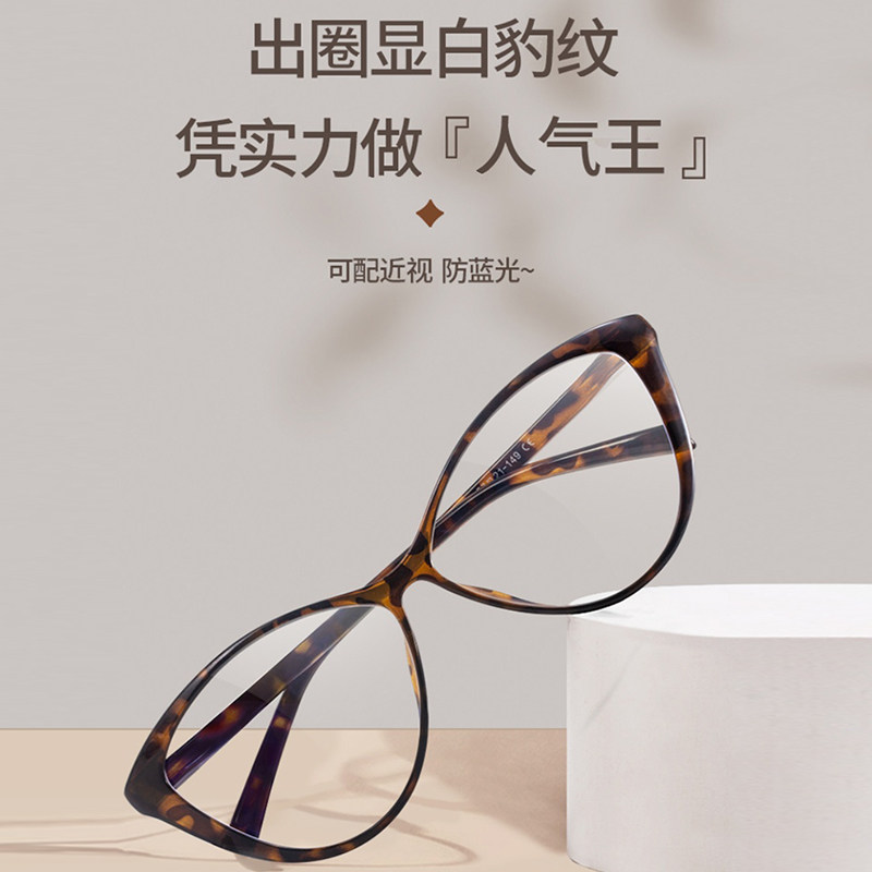 玳瑁色猫眼眼镜近视女款度数可配素颜神器豹纹装饰方圆脸镜框镜片