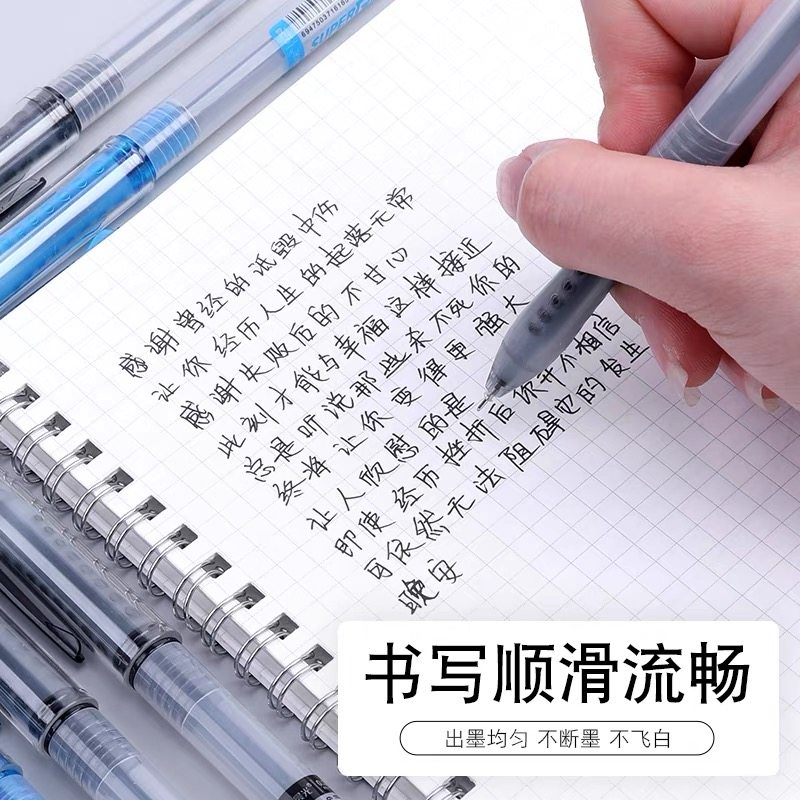 ST刷题笔高颜值按动中性笔圆珠笔黑色水笔小学生专用考试0.5速干碳素笔水性黑笔按压式做笔记签字笔非按斤卖