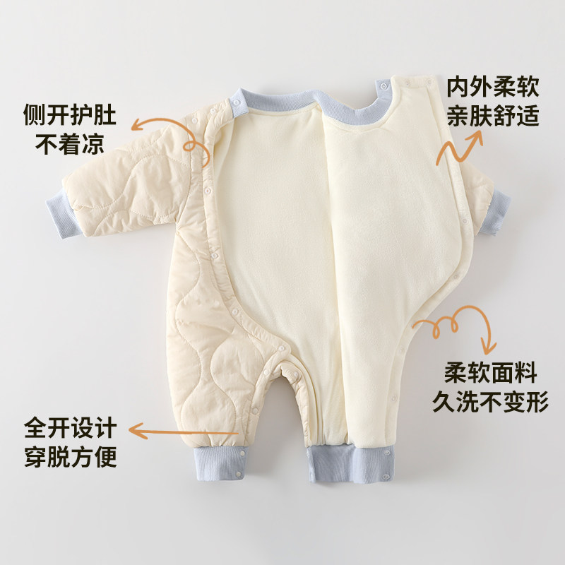 贝肽斯婴儿薄夹棉连体衣冬装外出新生幼儿宝宝衣服保暖空气棉睡衣