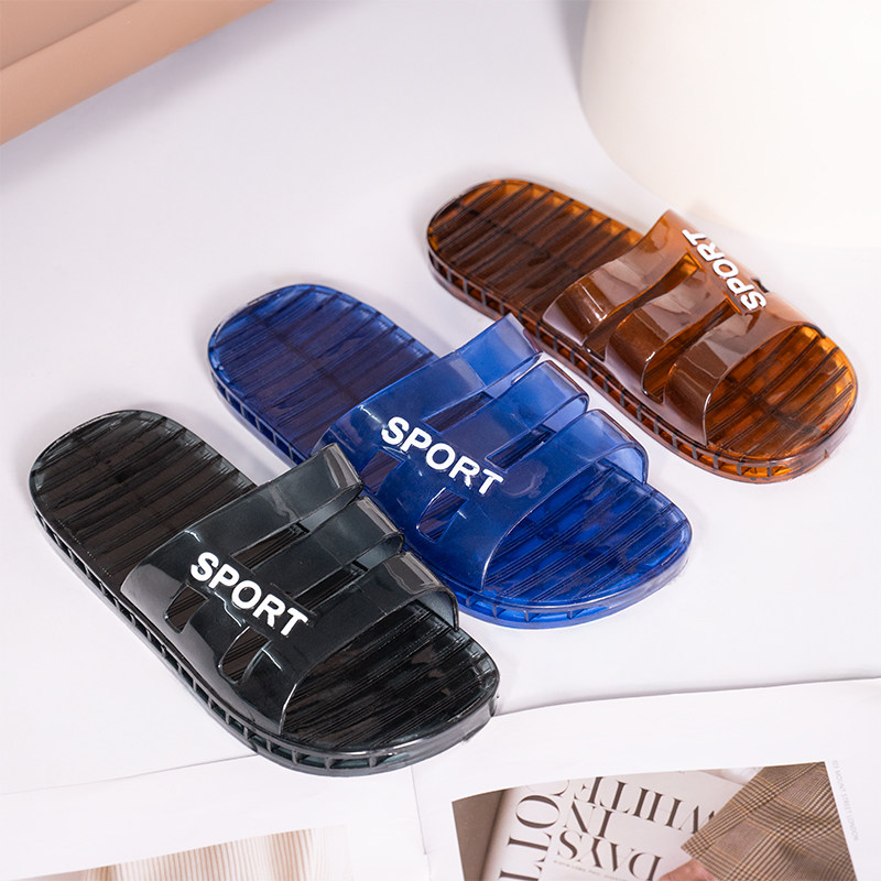水晶拖鞋男速干舒适塑料凉拖防滑耐磨浴室家用平底休闲一字拖防水